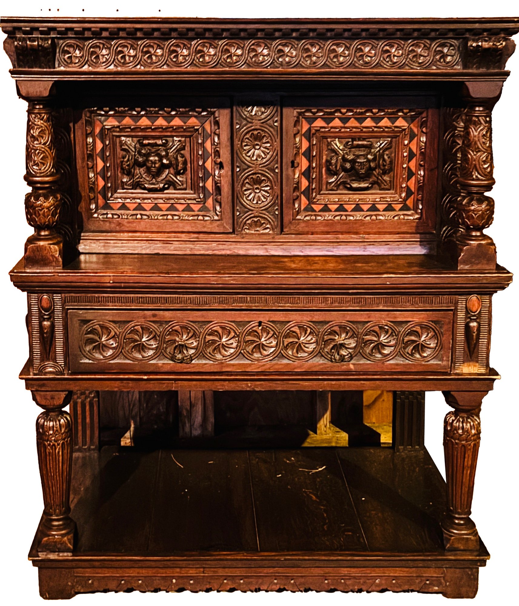 This is a fabulous antique piece. It is in good vintage condition but back shows some wear. Note photos.
