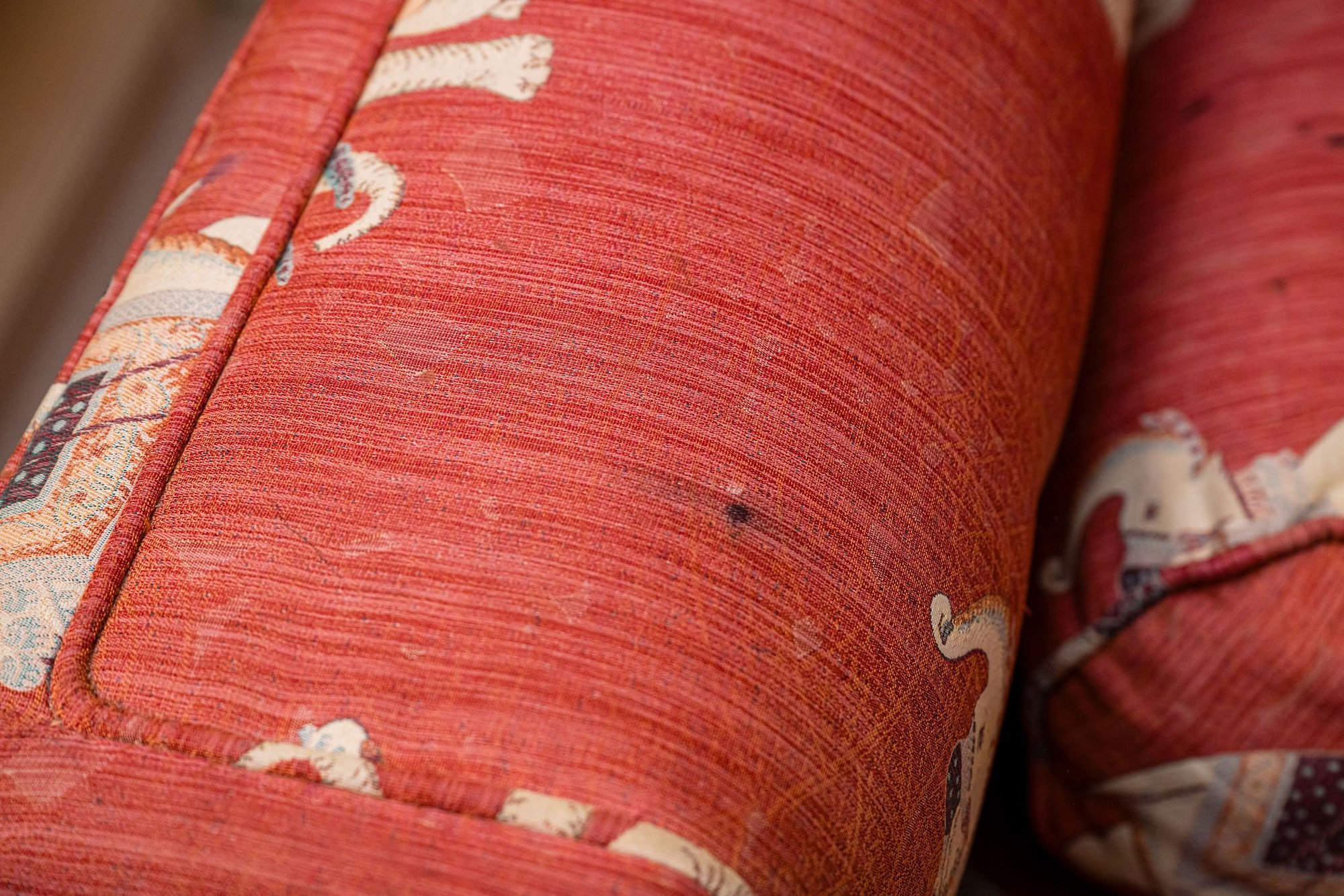 Great style and luxurious fabric similar to Zoffany Jaipur designs. Clean with a handful of small dots or discoloration - hardly noticeable.