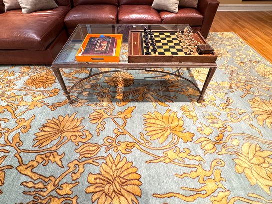 compatible with modern furnishings as well as eclectic and eccentric interiors. It is a striking carpet and even more so in person. Condition is very good has been used in a room with very little use. Note that there may be some indentations from furniture when removed that should spring back. Looking for a dramatic rug refresh - this is your carpet:)! Size 10 x 14