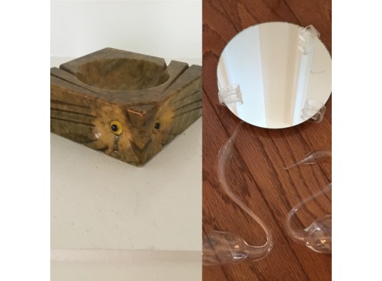 Fancy Blown Glass Swans With Directions And Alabaster Owl Made In Italy