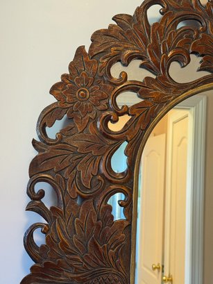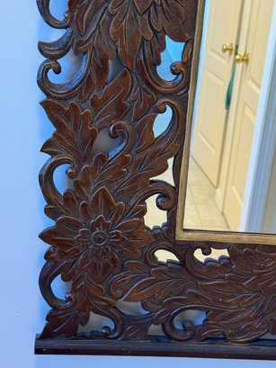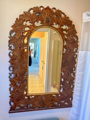 FANCY CARVED WOOD MIRROR, 32" X 48"