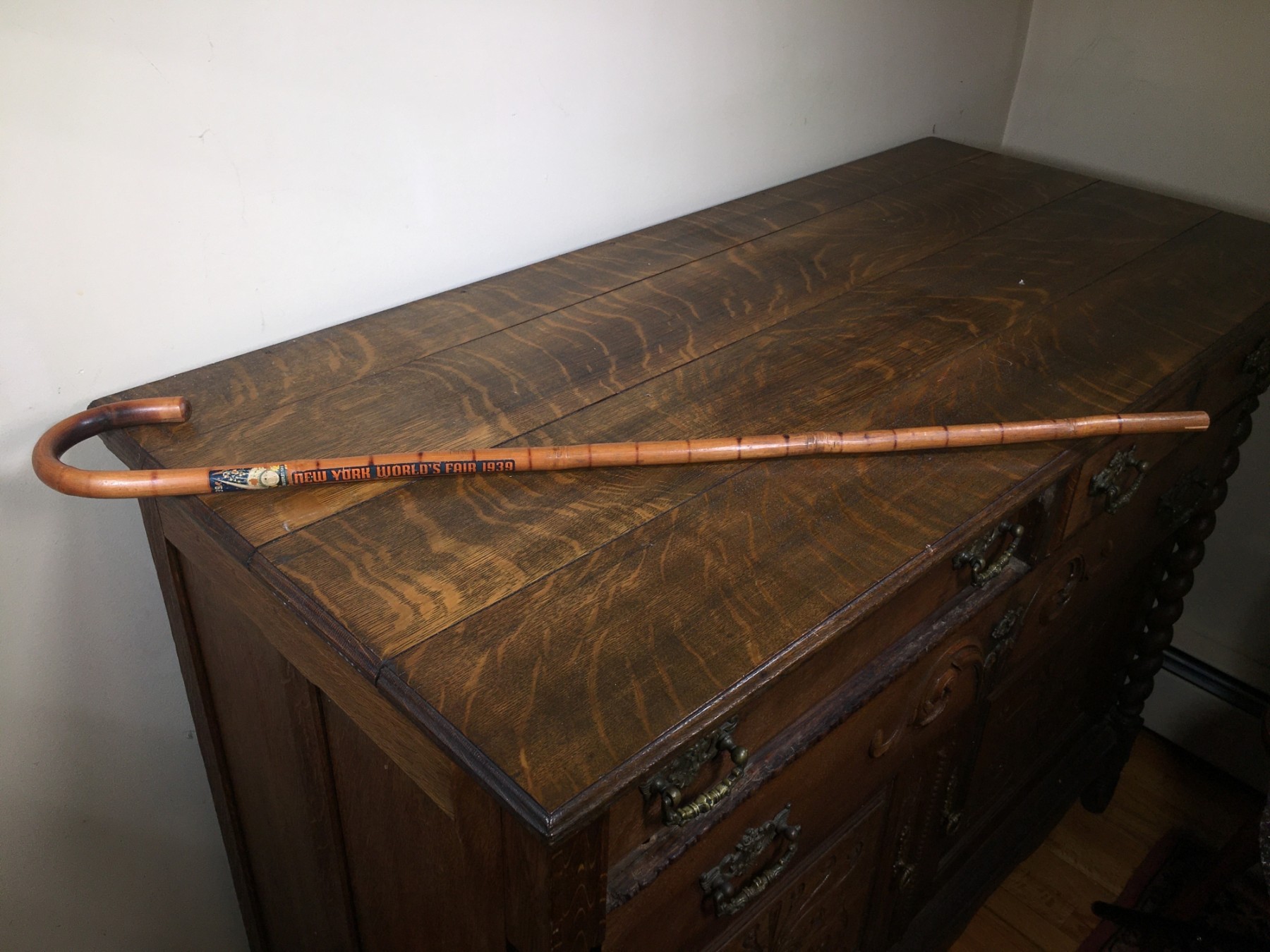 34-1/2" . . . . . ITS 81 YEARS OLD. . . . YOU WOULD THINK THESE WOULD BE EASY TO FIND . .THEY ARE NOT . .MOST OF THE DECALS ON THESE WOULD PEEL OFF. . .THIS ONE IS SOLID AND CLEAR. . . .another great sale . . .lots of interesting items . . . .lots of antique Victorian oak furniture, tools, camping items, artwork, housewares, electronics . . .plus a 2004 Mini Cooper S & a 2009 Yamaha CS Scooter (sold as their own auctions) . . .something for everyone. . . .YOU SHOULD NOT MISS THIS SALE. . . .Thank You
