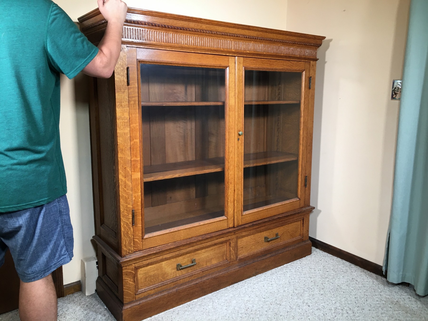 59" x 16" x 60" . . . . . FIVE FEET TALL . . .THIS IS A GREAT ANTIQUE PIECE . . . .another great sale . . .lots of interesting items . . . .lots of antique Victorian oak furniture, tools, camping items, artwork, housewares, electronics . . .plus a 2004 Mini Cooper S & a 2009 Yamaha CS Scooter (sold as their own auctions) . . .something for everyone. . . .YOU SHOULD NOT MISS THIS SALE. . . .Thank You