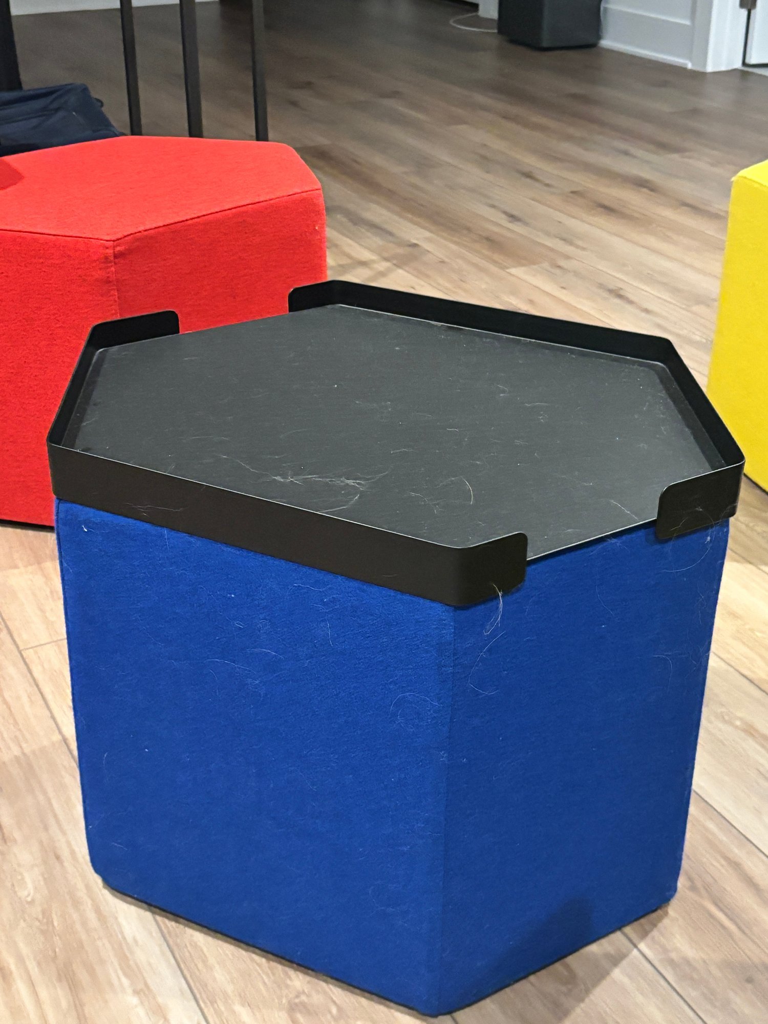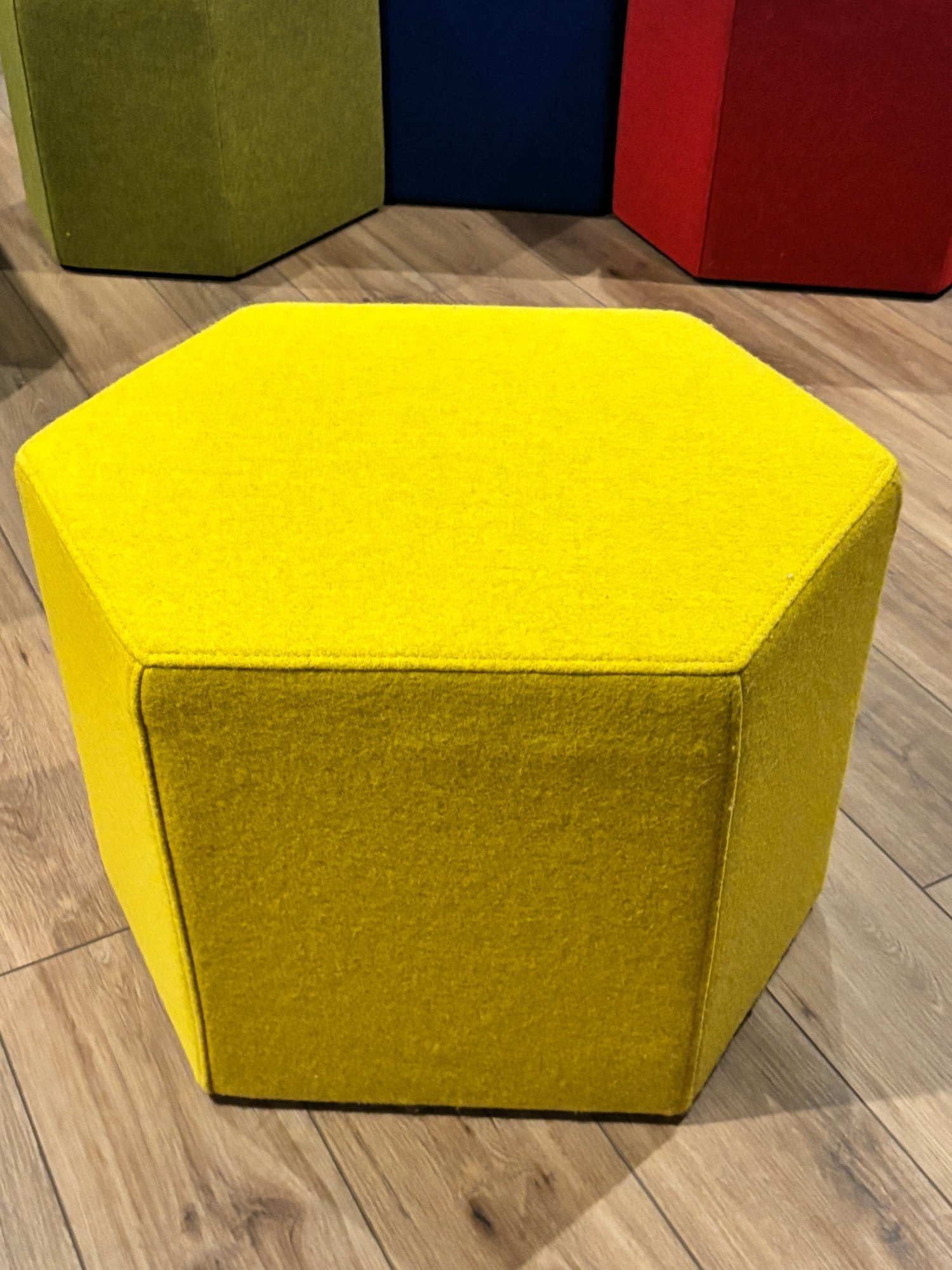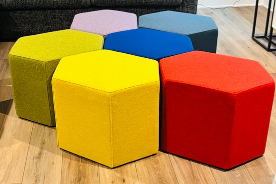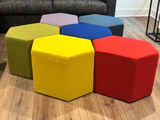 Set of 6, six-sided Hecks ottomans to make a honeycomb of seating possibilities for your home.