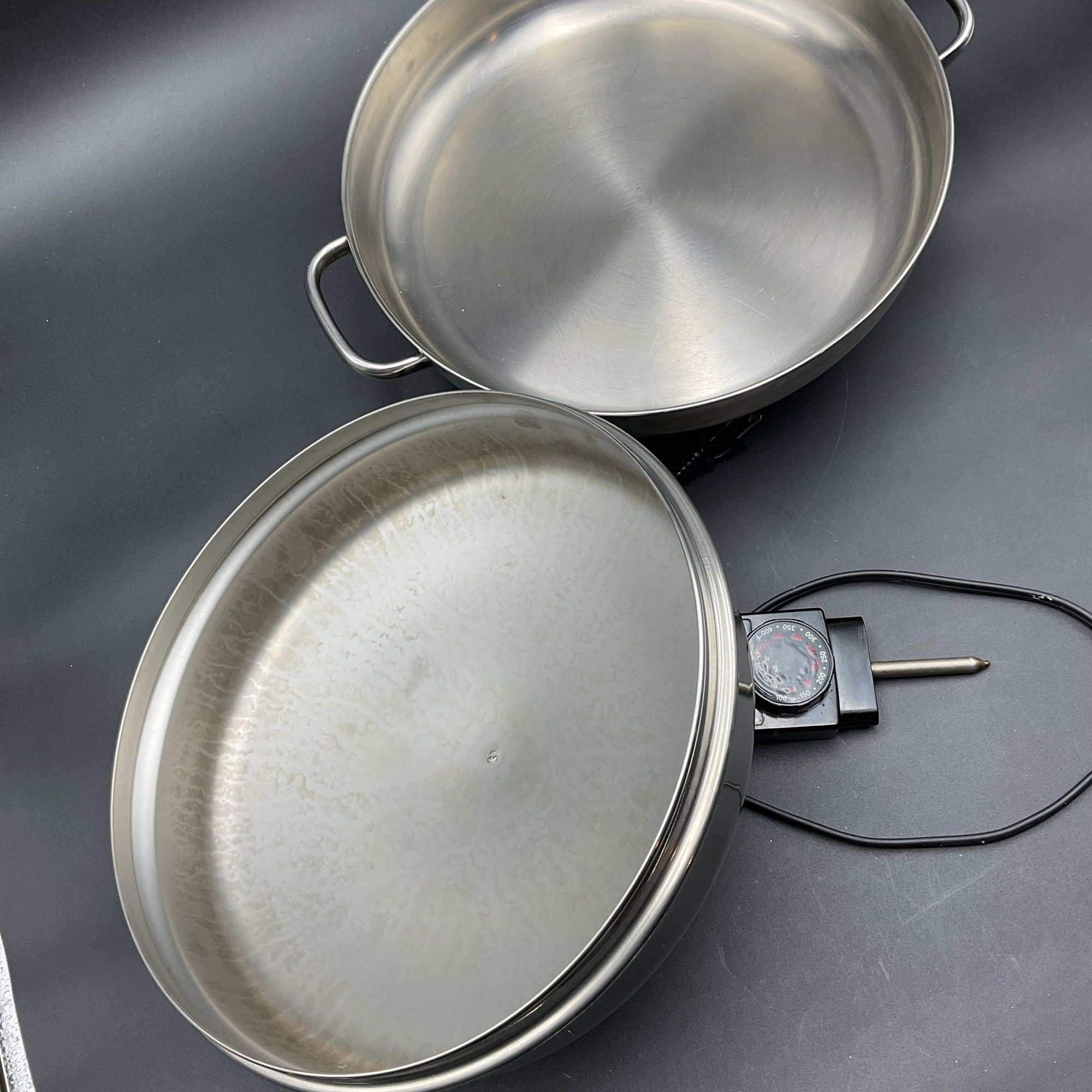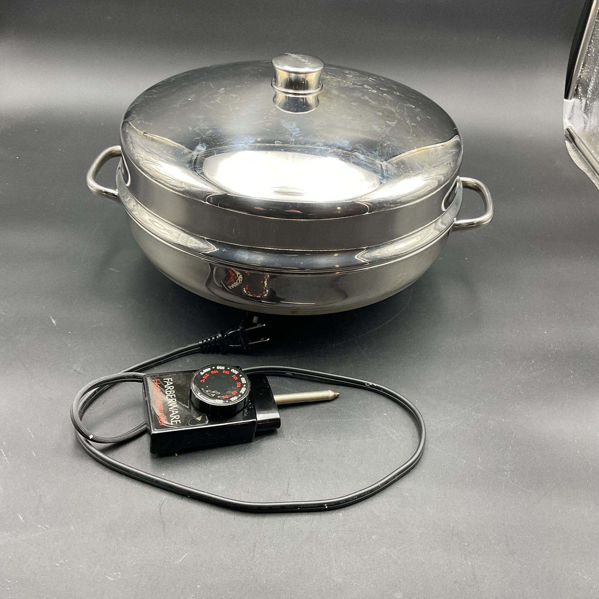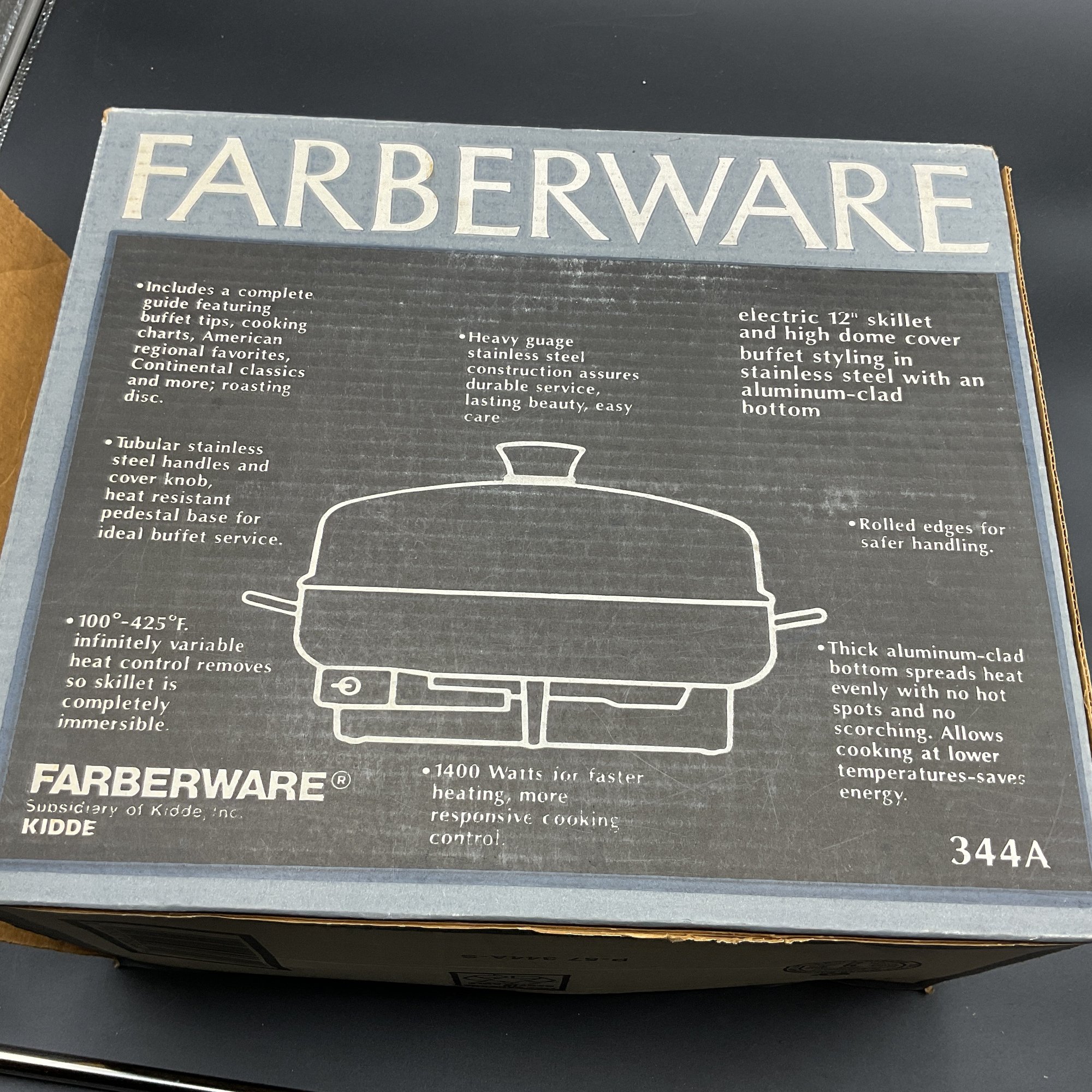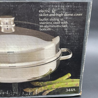 Electric 12" skillet with high dome cover, excellent condition in original box. Tested and works great.