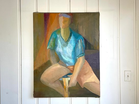 Figure in turquoise shirt oil on canvas.