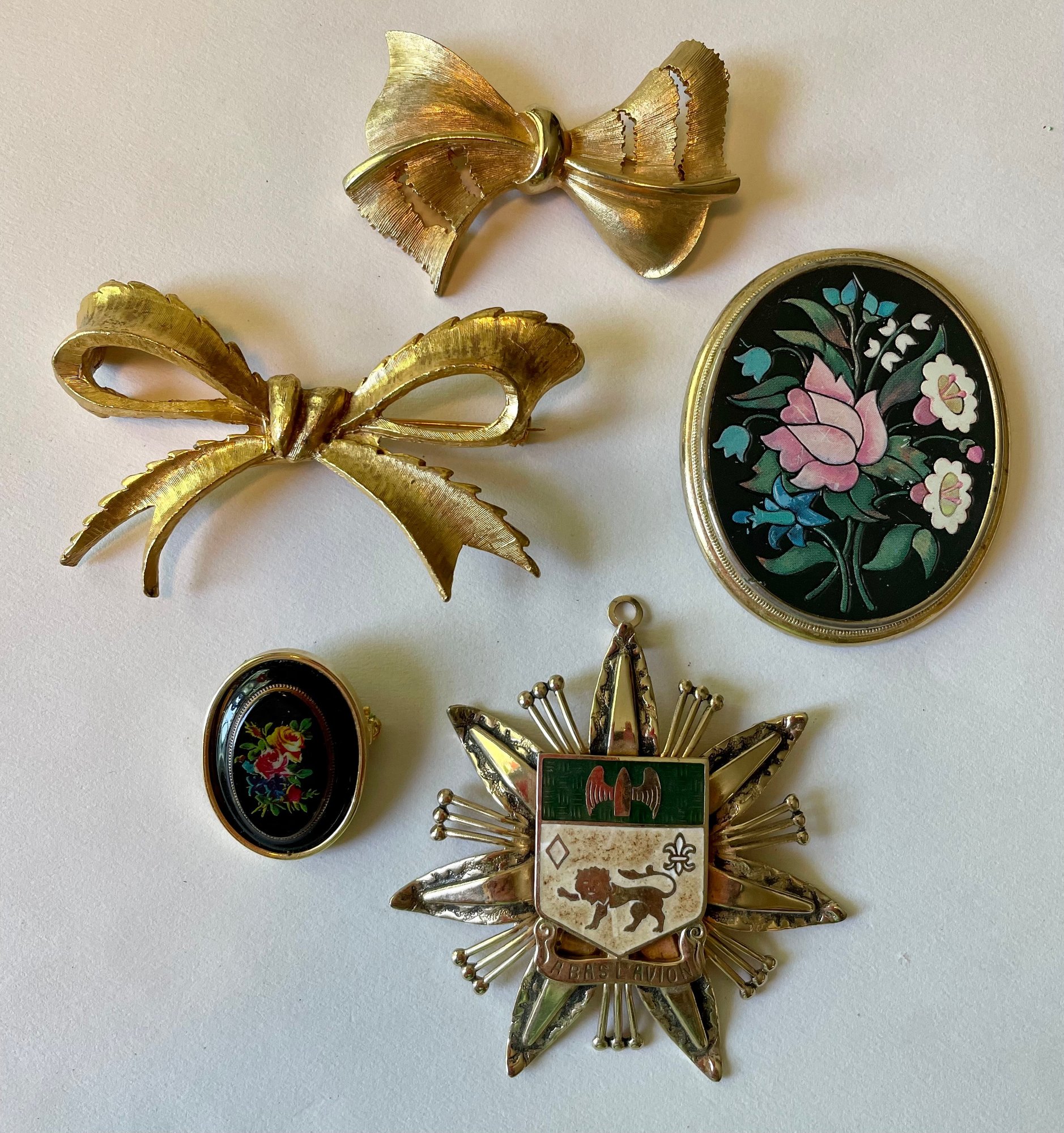 A very attractive group of pins and pendants (one is a pin or pendant). They were made by various makers - all vintage and in good condition.