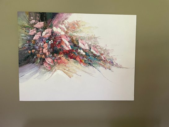 White canvas painting. Engraved name on back. No damages seen in images. See photos for more conditions and sizing.