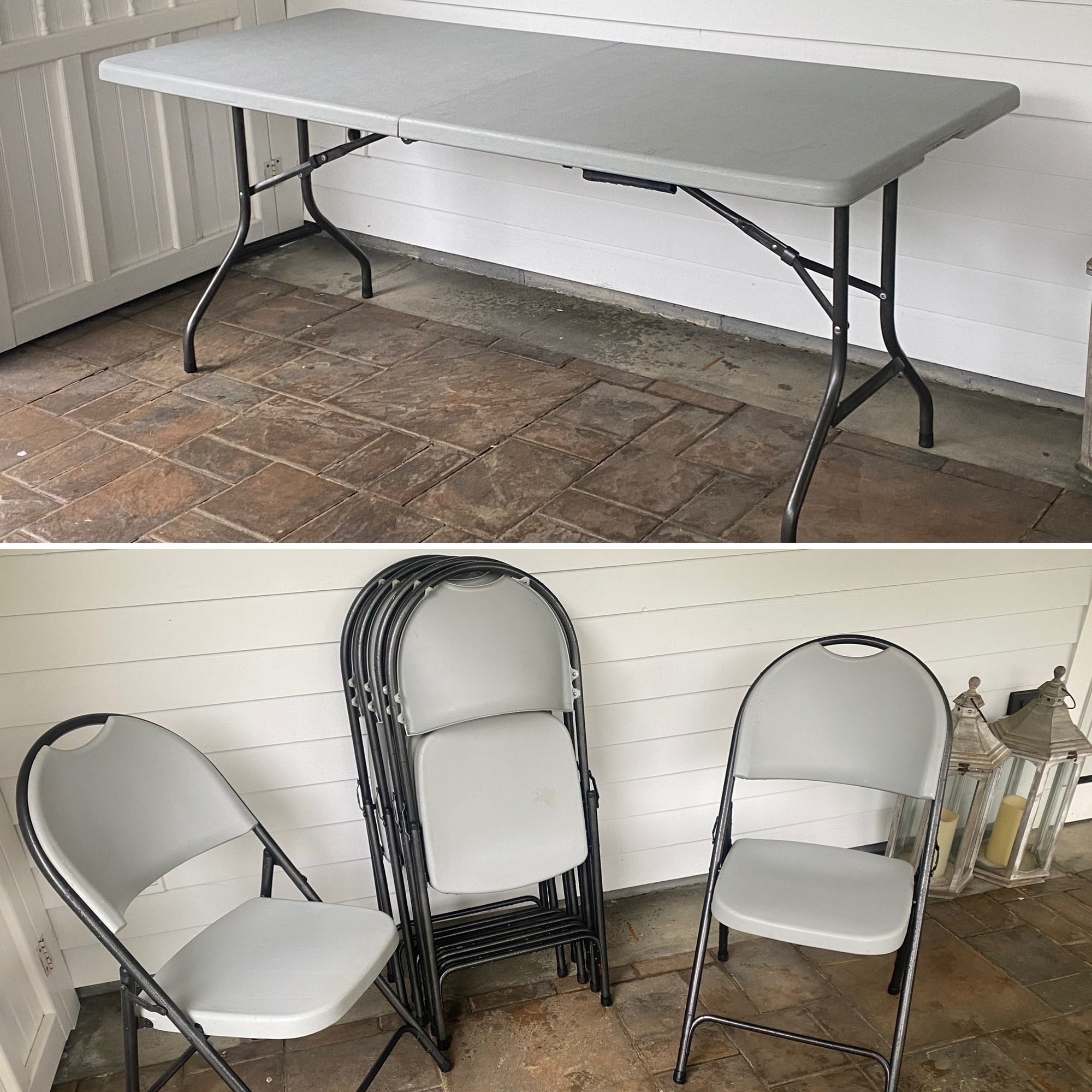 Folding banquet table and six (6) folding chairs.