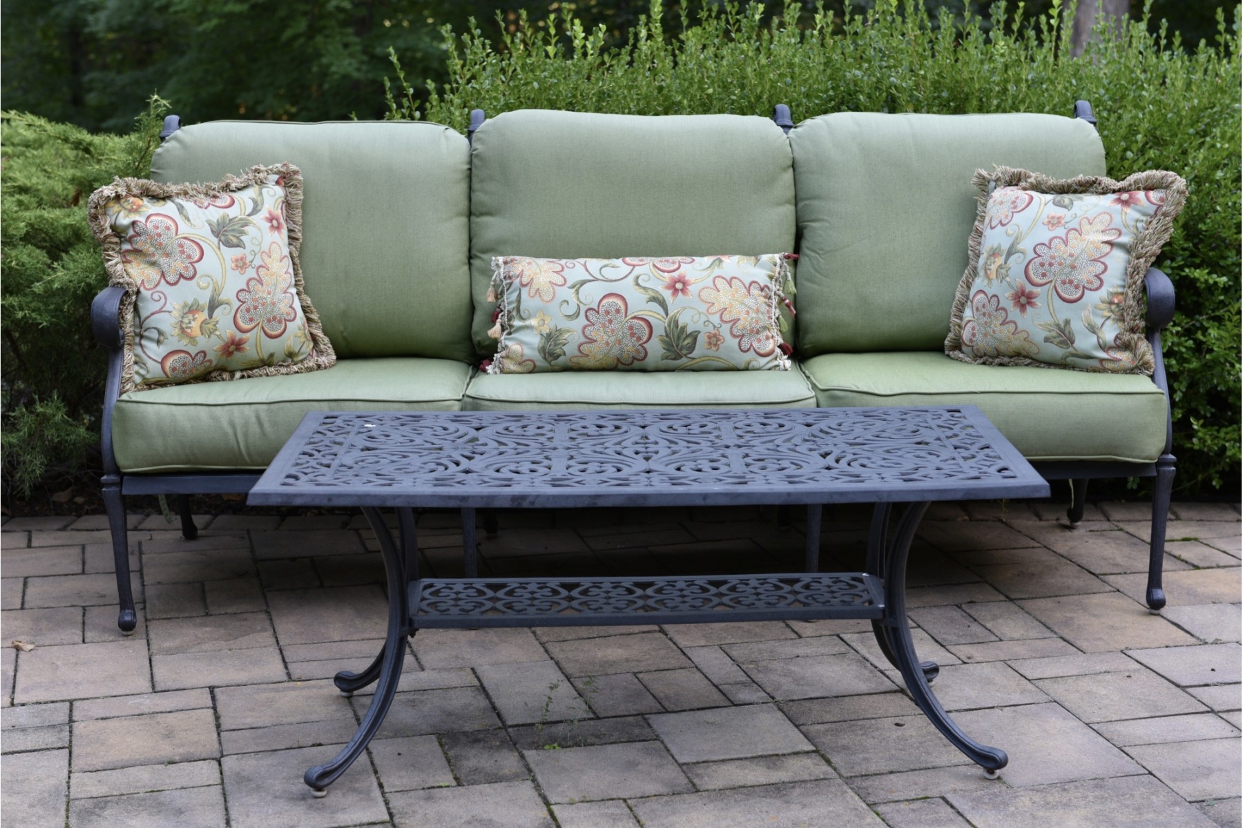 Full of the old-world charm you would expect from the city it is named for, the Naples heavyweight cast aluminum sofa features rust and UV-resistant powder coat finish with hand applied antiquing providing exquisite lasting detail without the added burden of time-consuming maintenance. It's the perfect combination of casual sophistication.