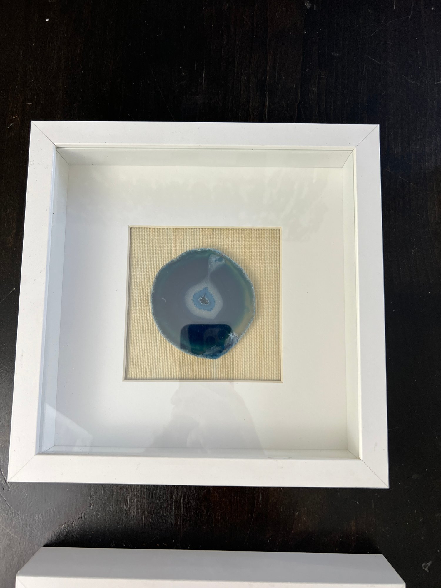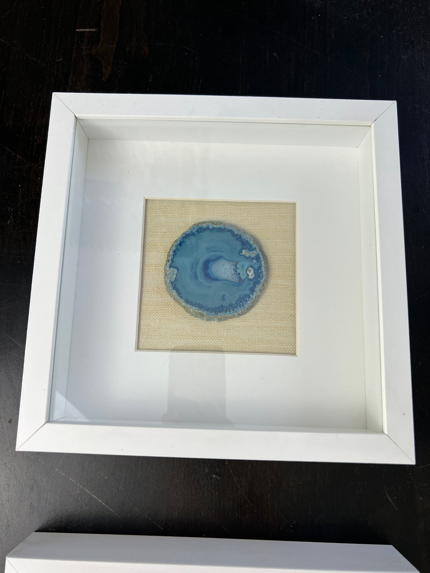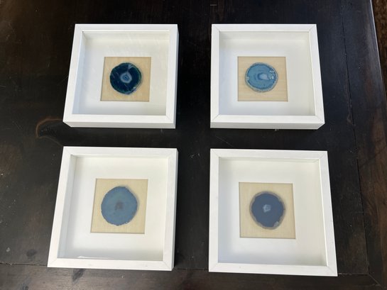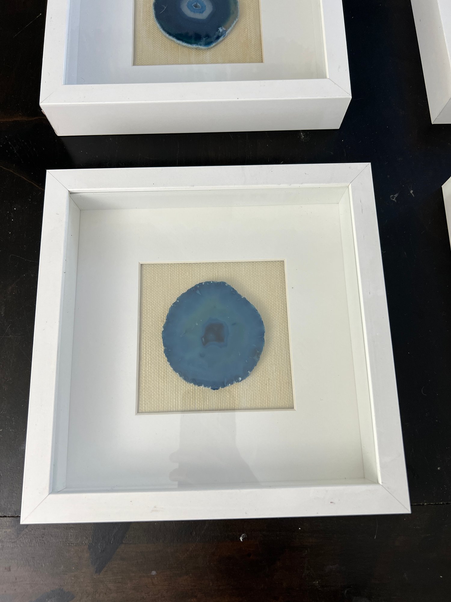 Nice four-part Ikea "Ribba" cross-sectioned blue geode slices in white frames.