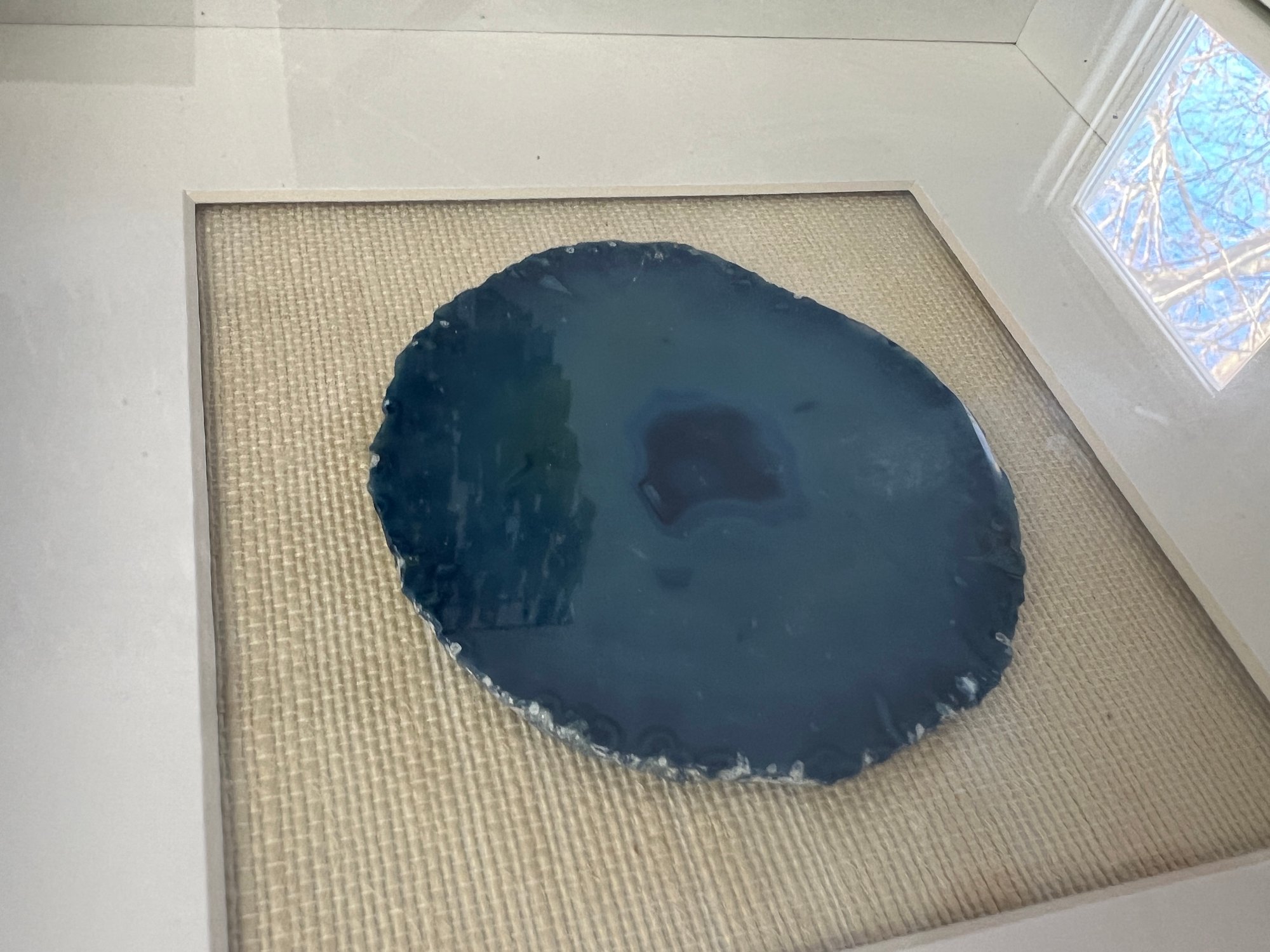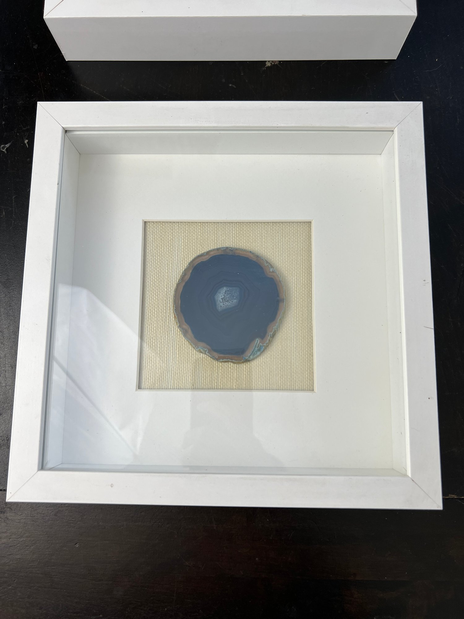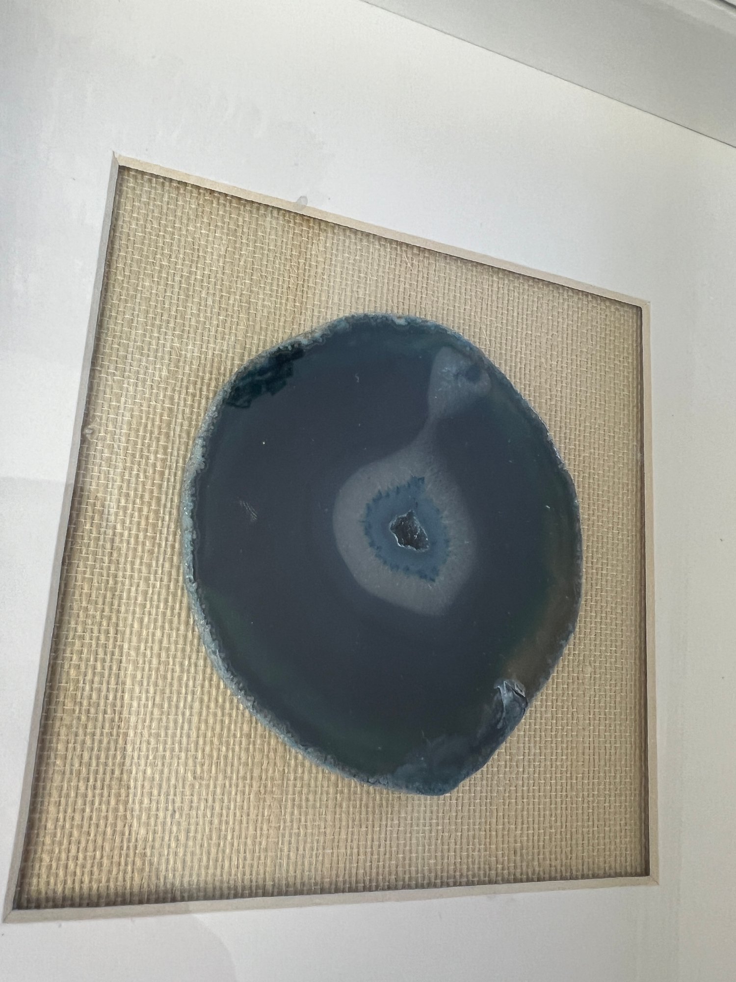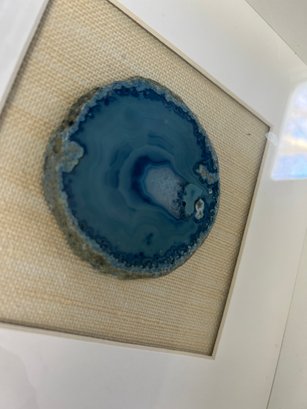 Nice four-part Ikea "Ribba" cross-sectioned blue geode slices in white frames.