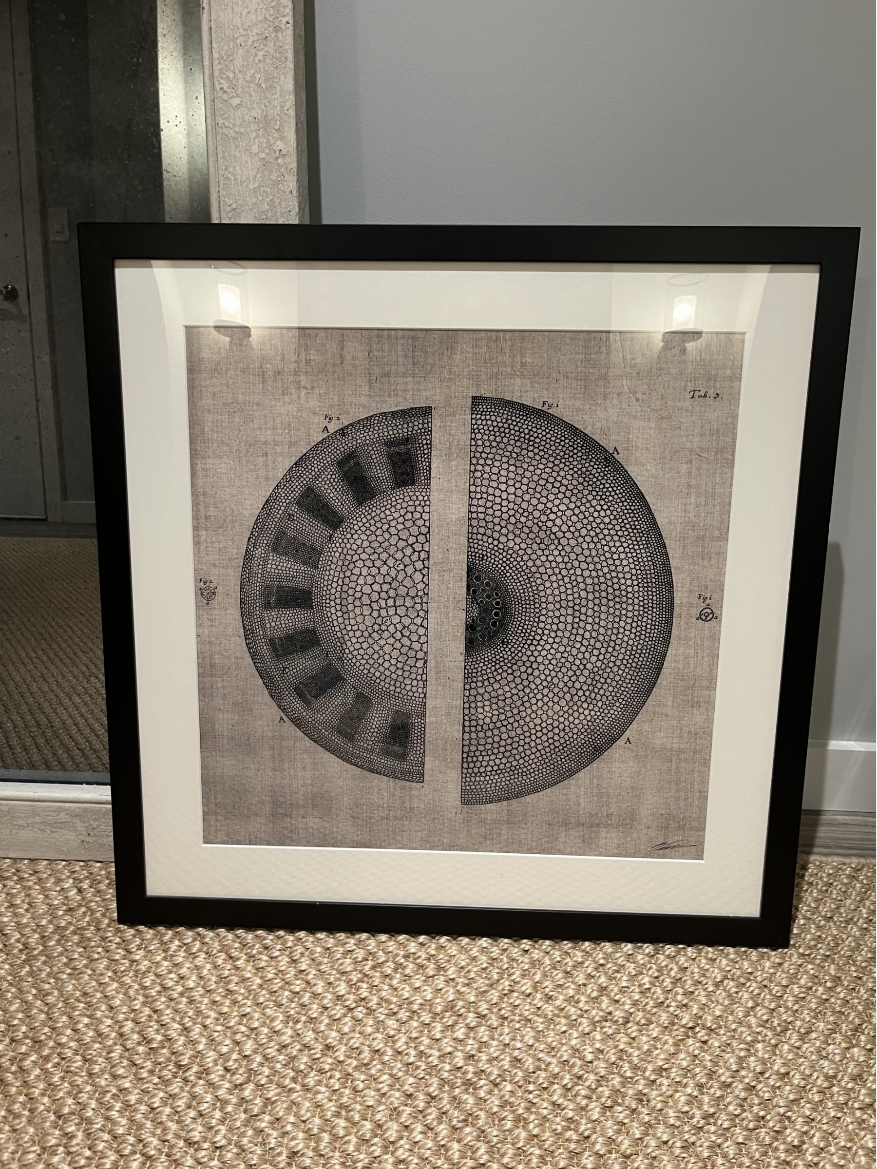 Great for decorators! Nice neutral black and beiges in mosaic pattern in black frame.