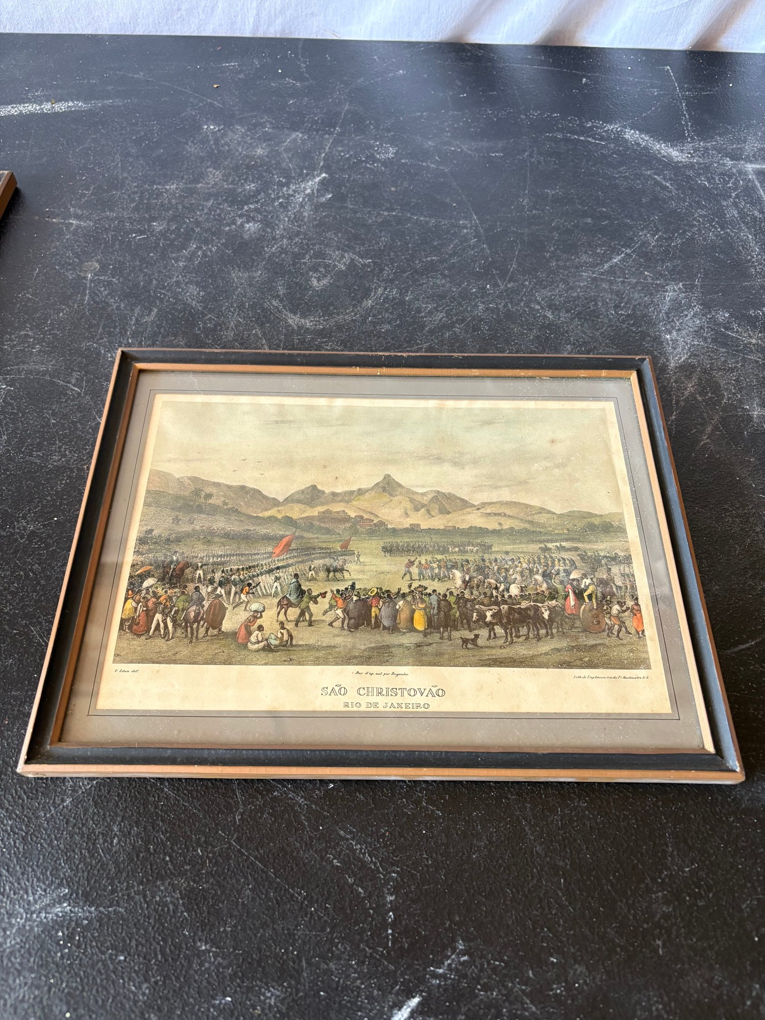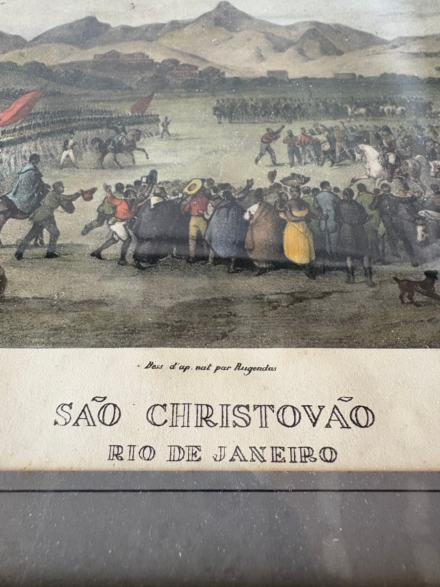 Framed Lithograph Print Titled "San Christovao," Depicting A Military Parade