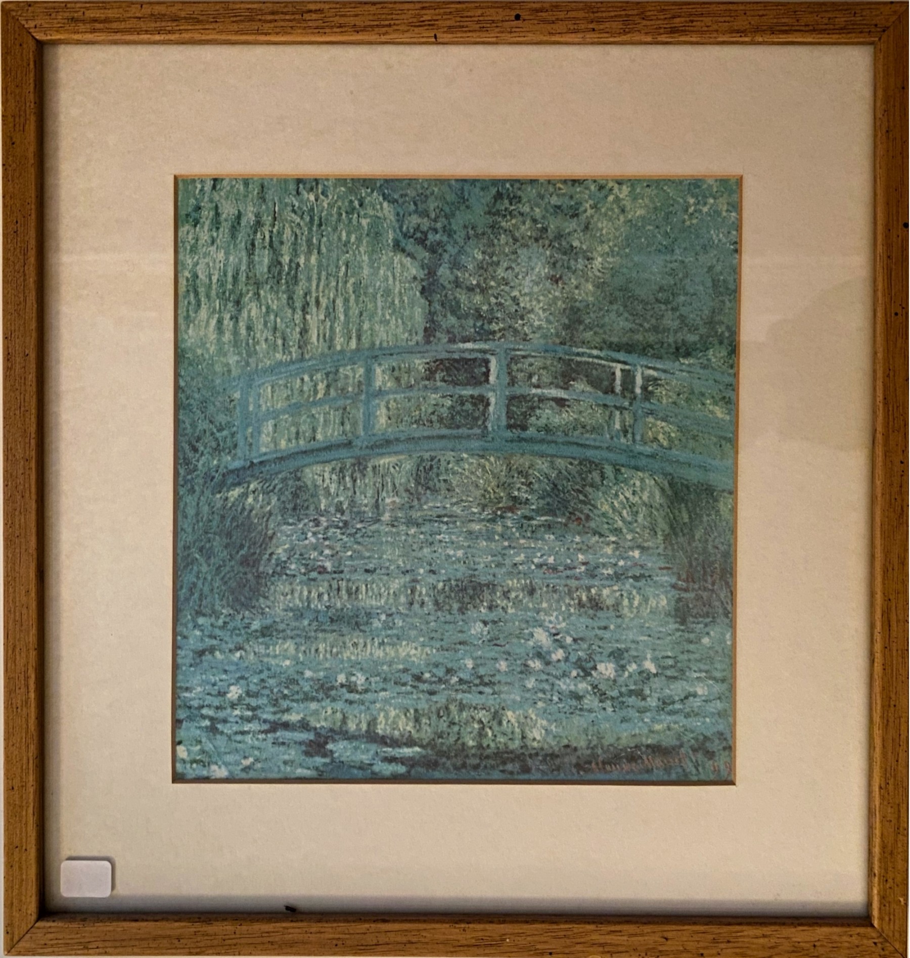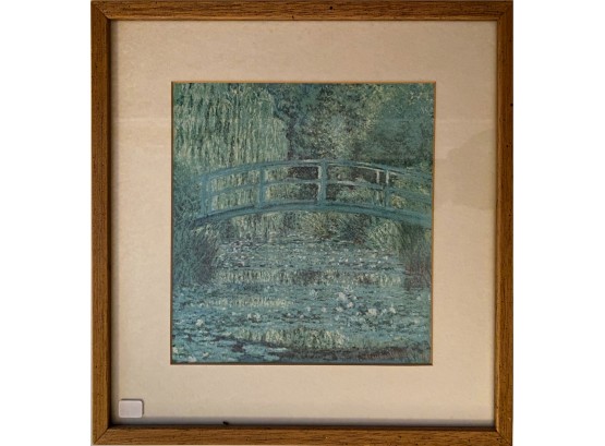 Framed print of Monet's Waterlily Pond, The Bridge. White mat and wooden frame.