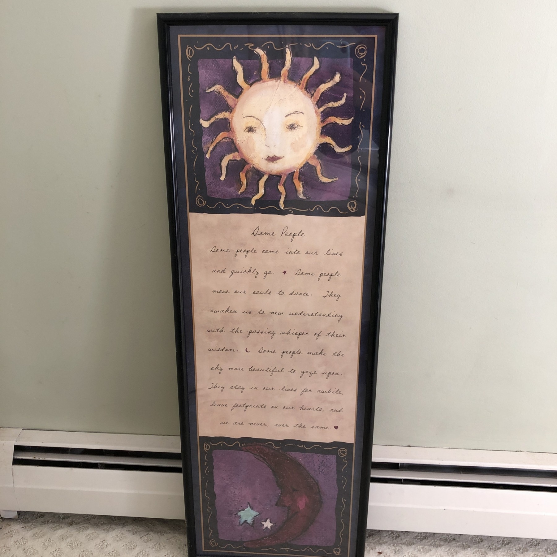Framed Poster Print with sun artwork and a poem titled "Some People."