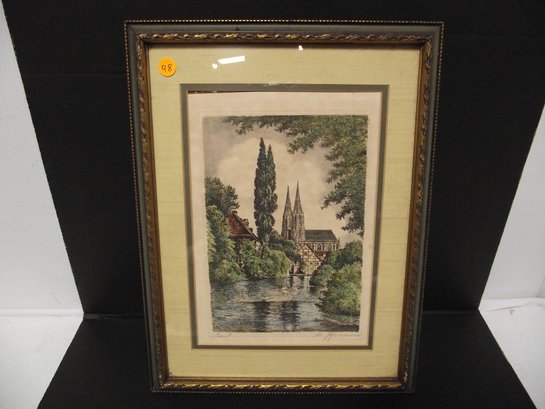 Framed Signed Colored Etching