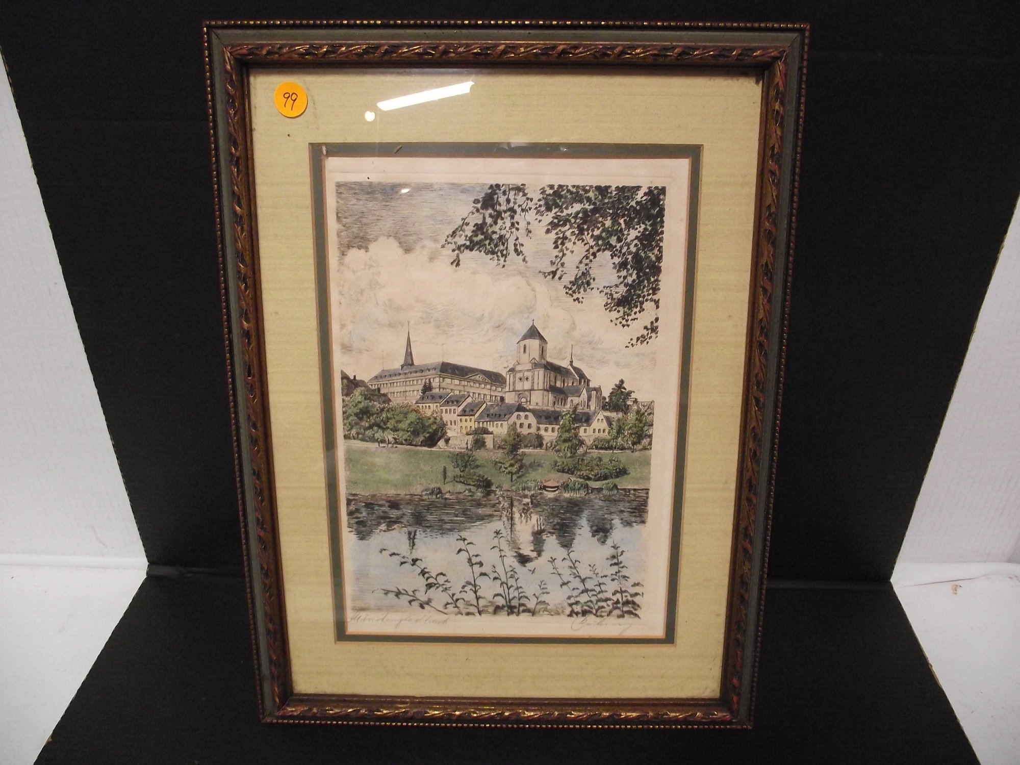 Framed Signed Colored Etching