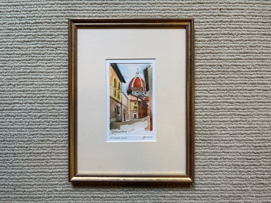 Custom framed and matted watercolor of Florence, Italy.
