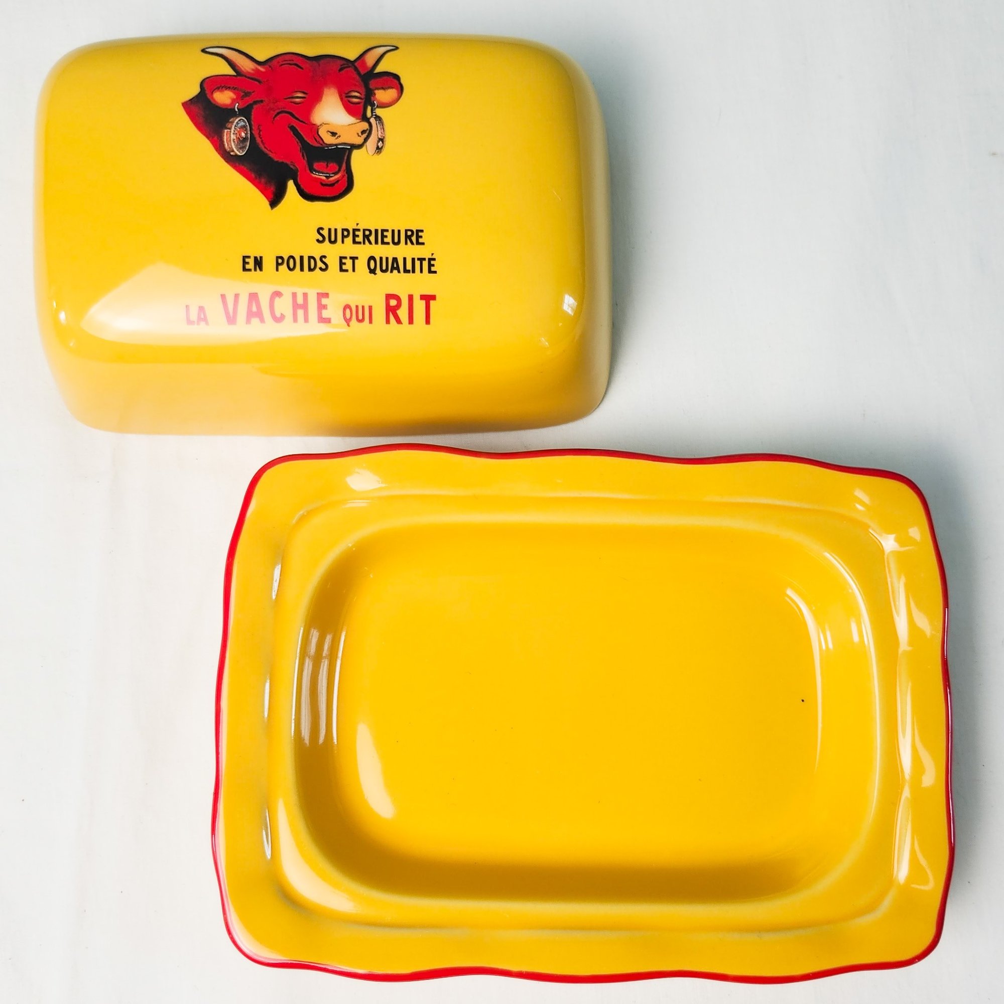 Cute yellow lidded cheese or butter dish by Fromageries Bel.