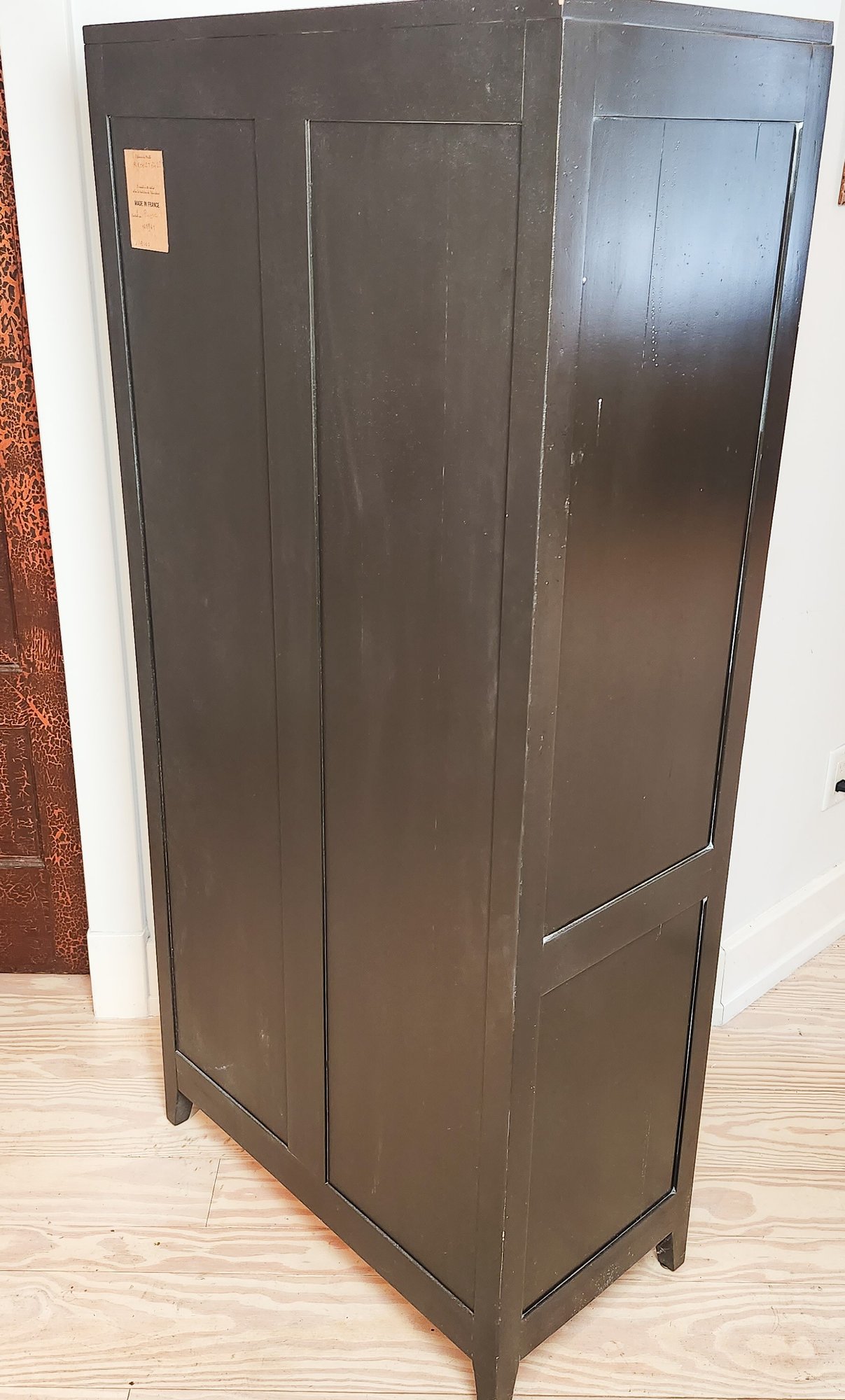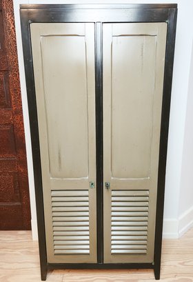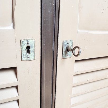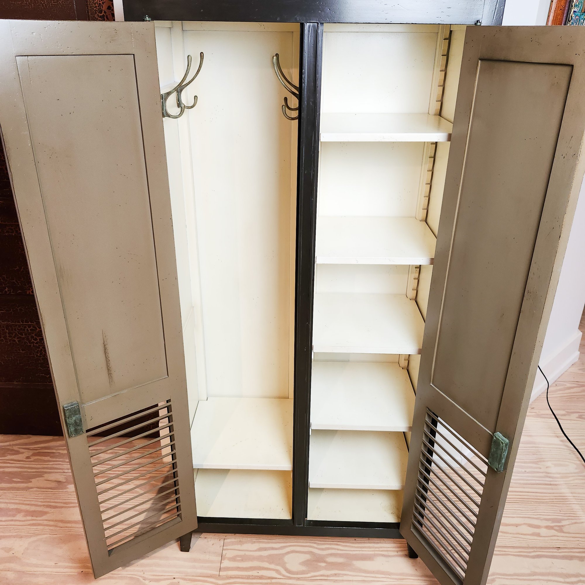 Lovely and practical double door locker with adjustable shelves and four hooks, made in France. Both doors lock with the single key included. Label on back marked Grange.