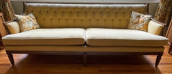 French Provincial Brocade Tufted Sofa With Wood Frame