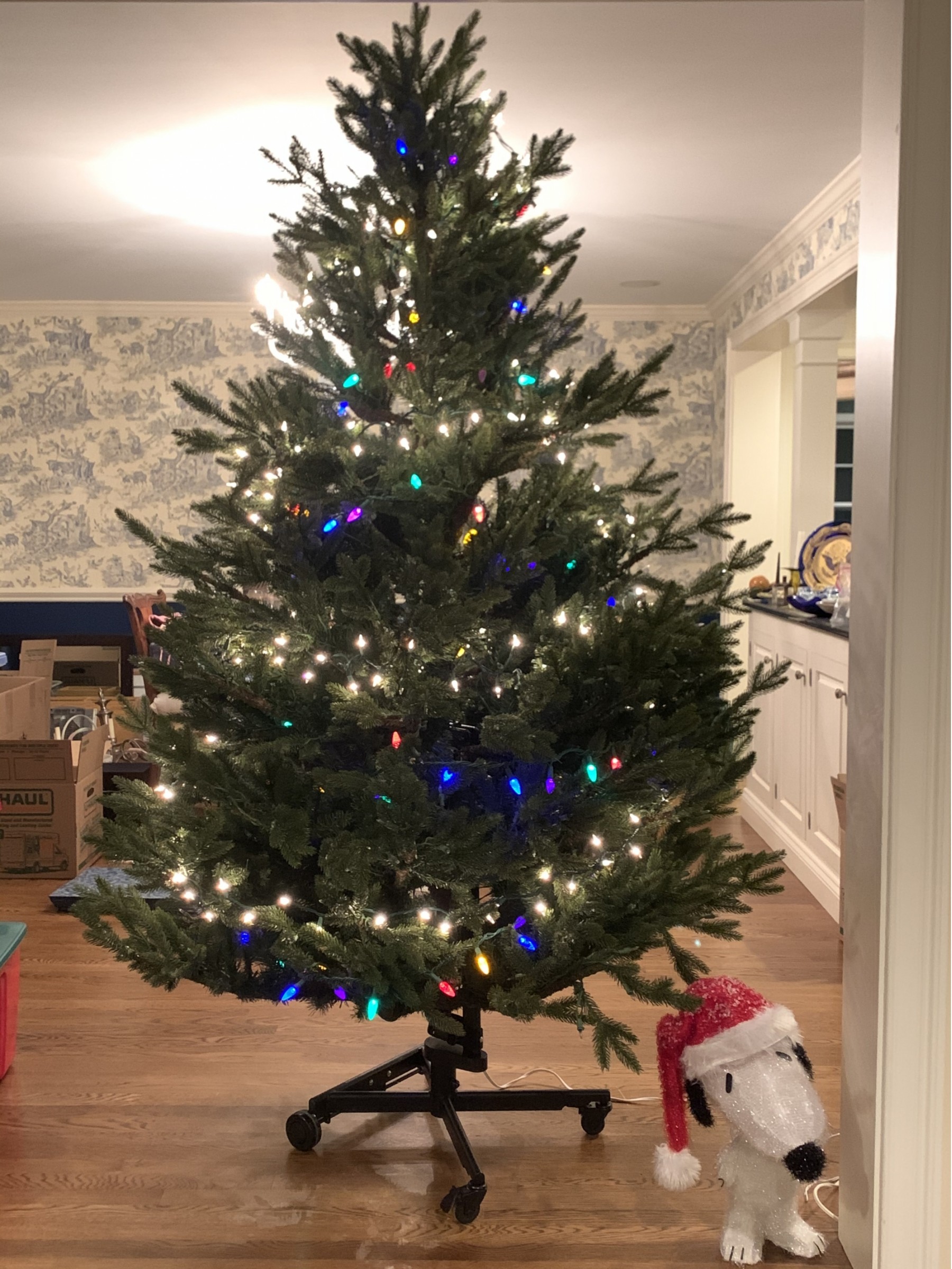 Create a warm and inviting holiday atmosphere with a low-maintenance artificial Christmas trees that looks as stunning as the real version. While the original lights do not work, this includes a set of both white and multicolored lights. Folds and dissembles easily and fits nicely into storage bag, included.
