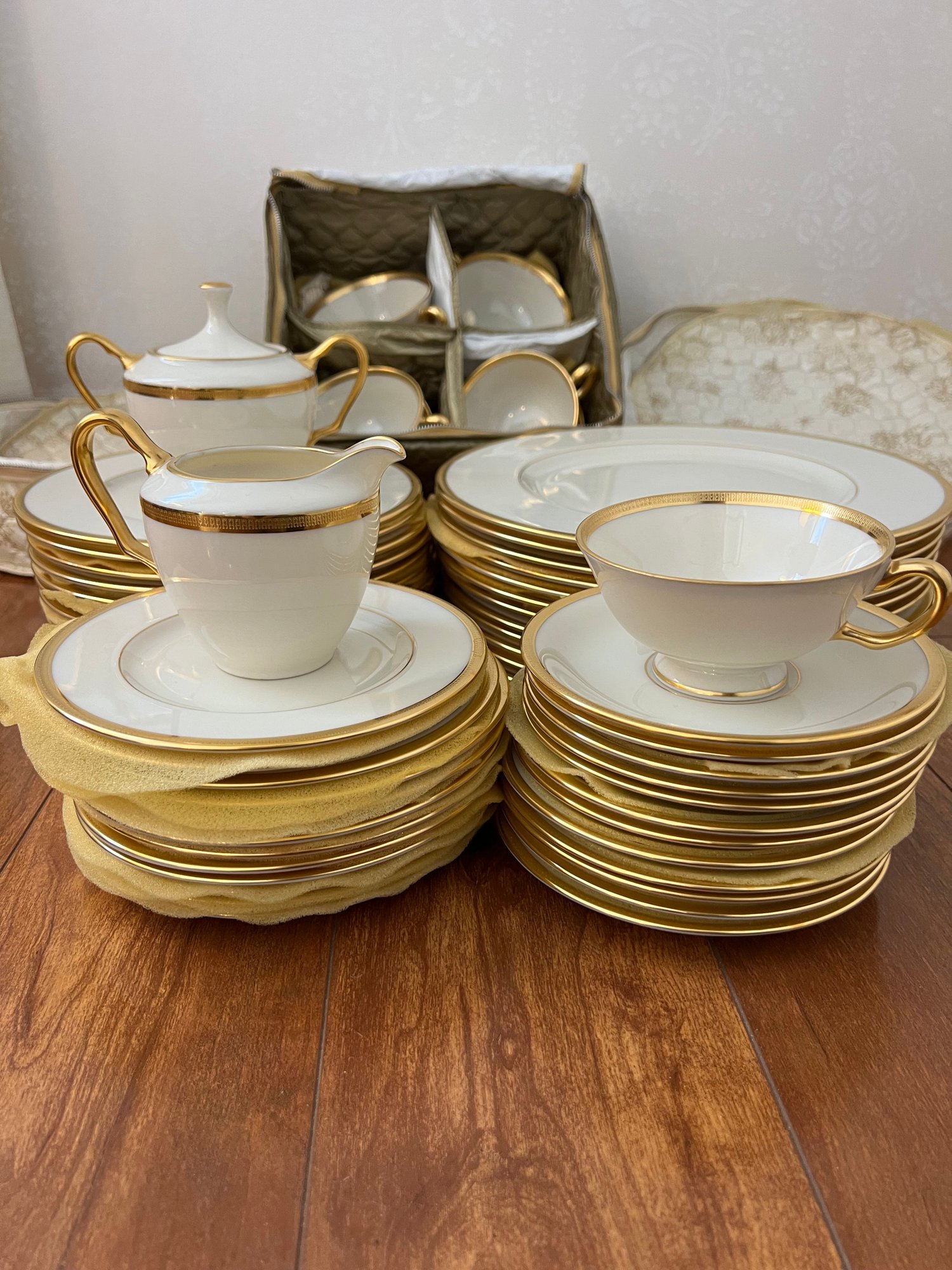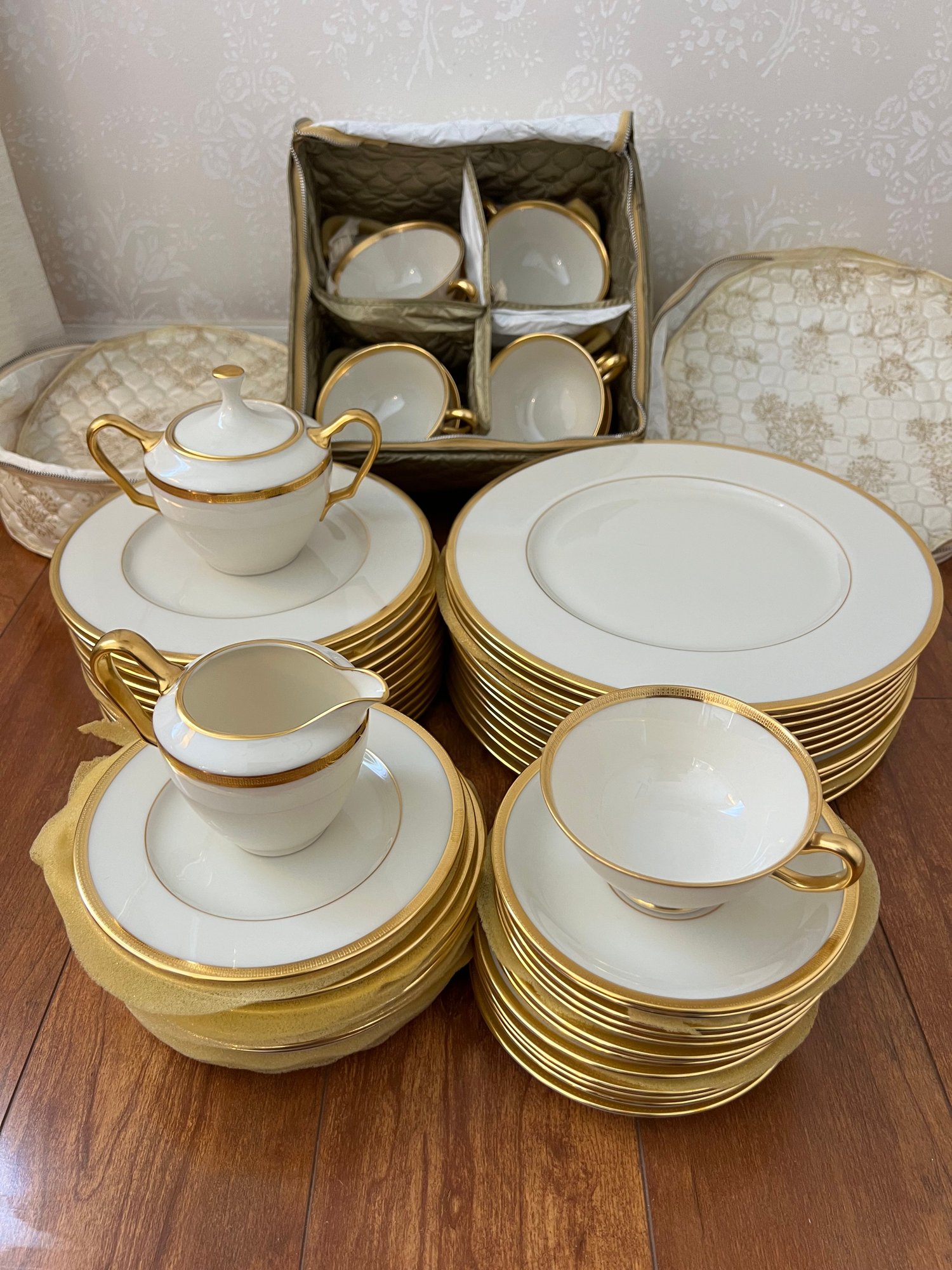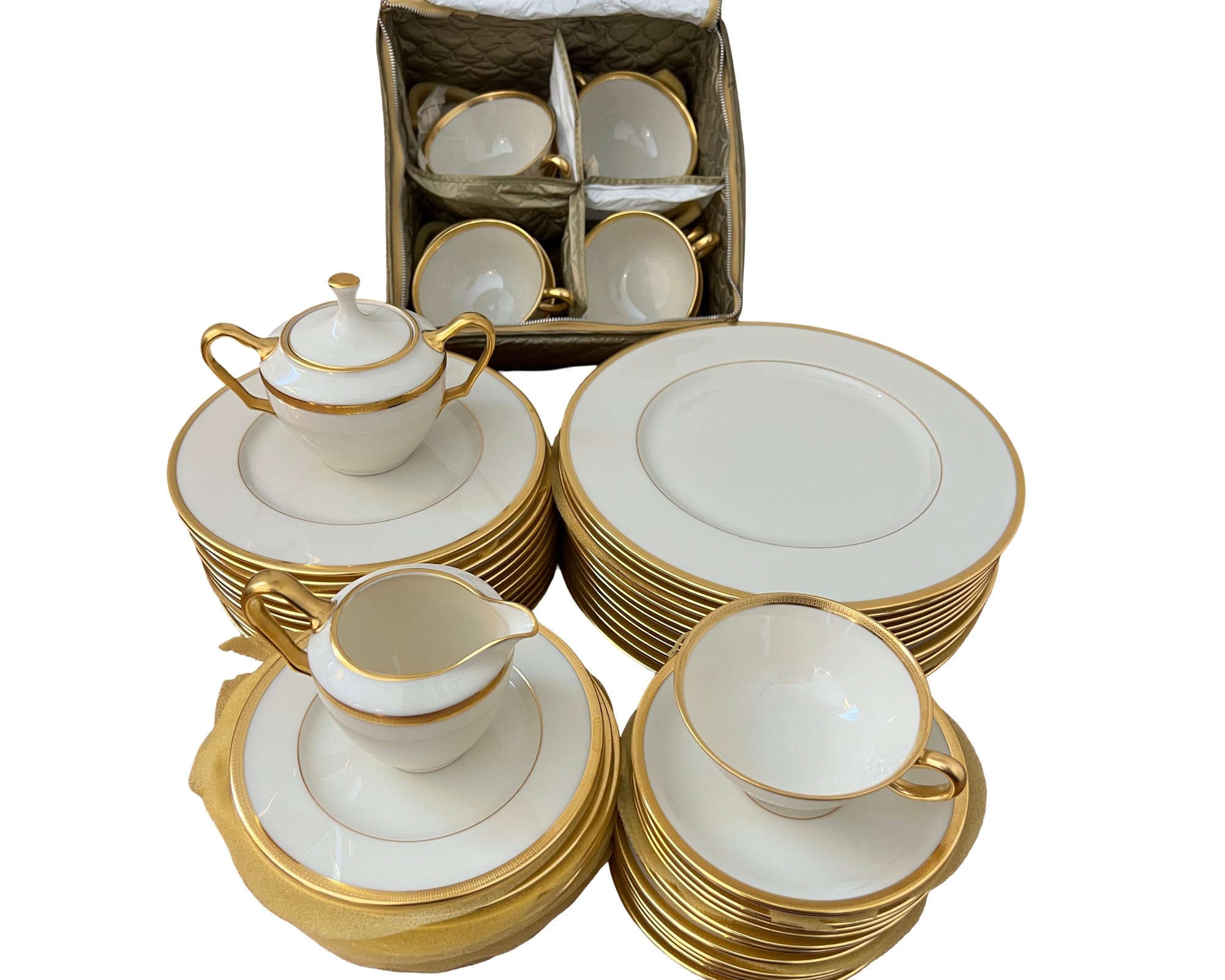 The Lenox Tuxedo collection is highly prized by collectors and for formal dining. Its understated elegance and 24K gold detailing make it perfect for holiday dinners, special occasions, or adding a touch of sophistication to any table. A full set like this offers both practical use and display value for Lenox enthusiasts.