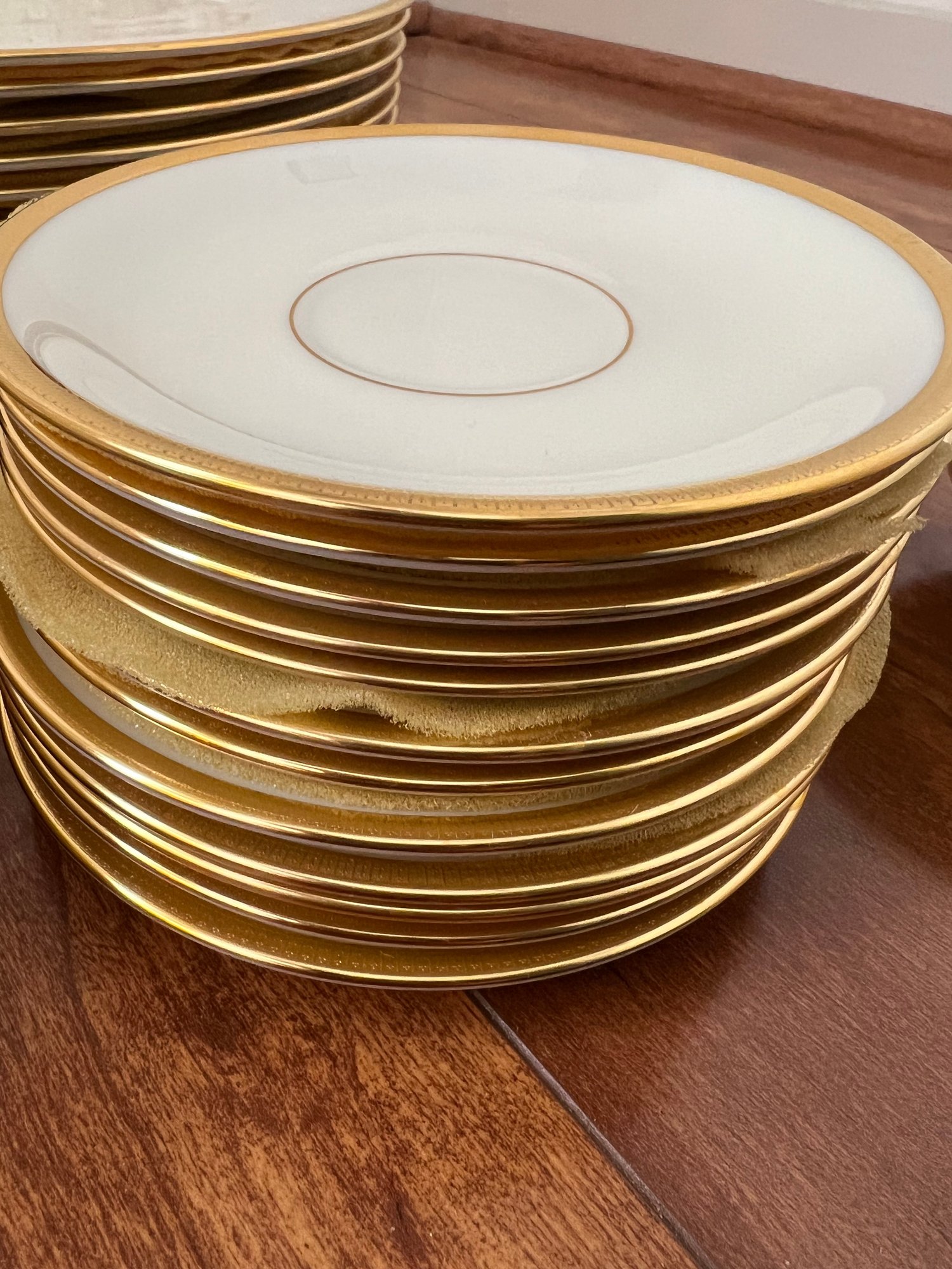 • Pattern: Clean ivory with wide gold band trim