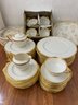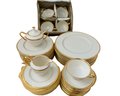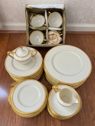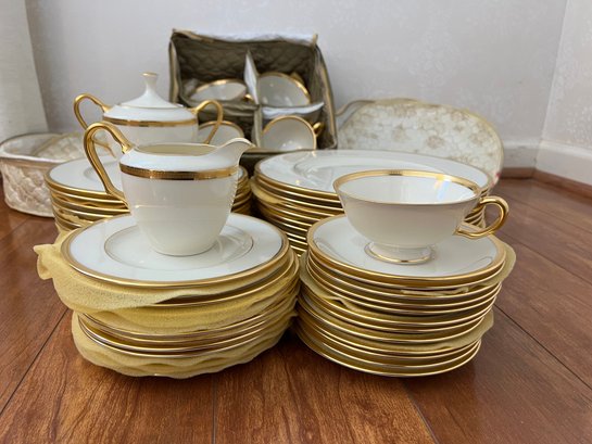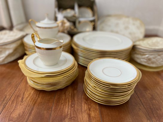 classic Lenox Tuxedo dinnerware set, a timeless collection known for its ivory bone china body accented with polished 24-karat gold rims. Part of Lenox’s Presidential collection, this elegant pattern is celebrated for its minimalist sophistication and formal dining appeal.
