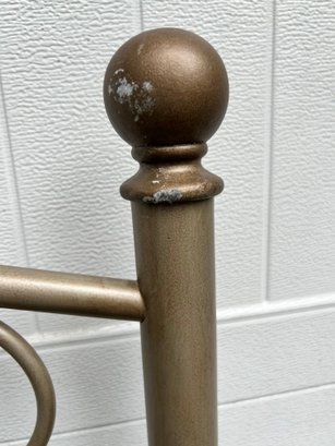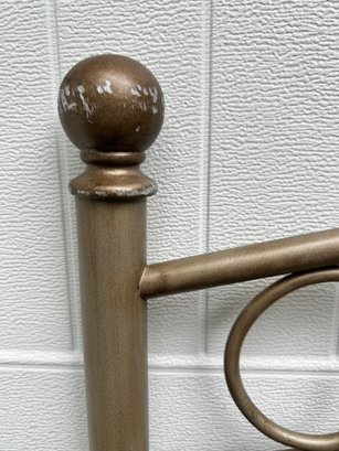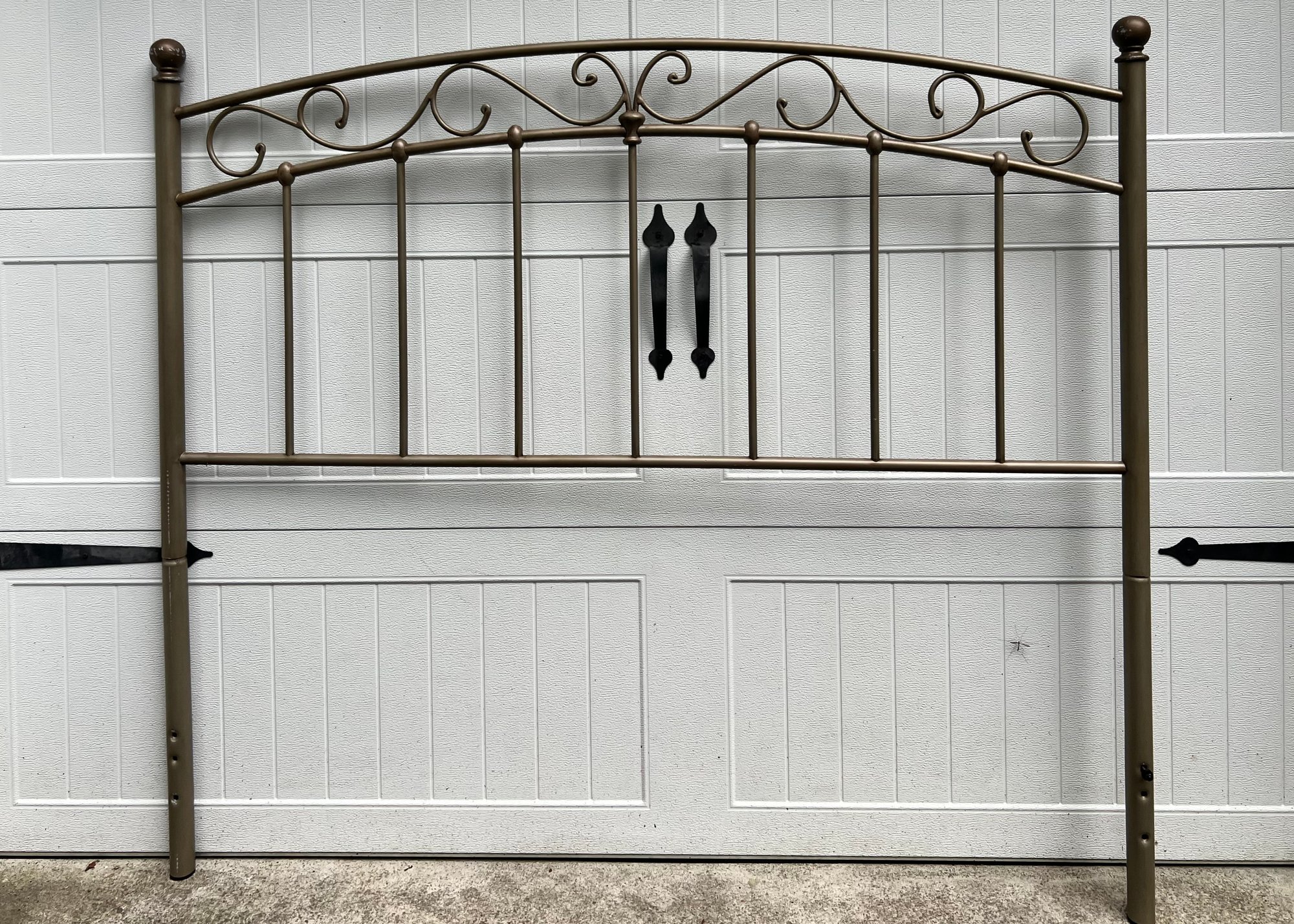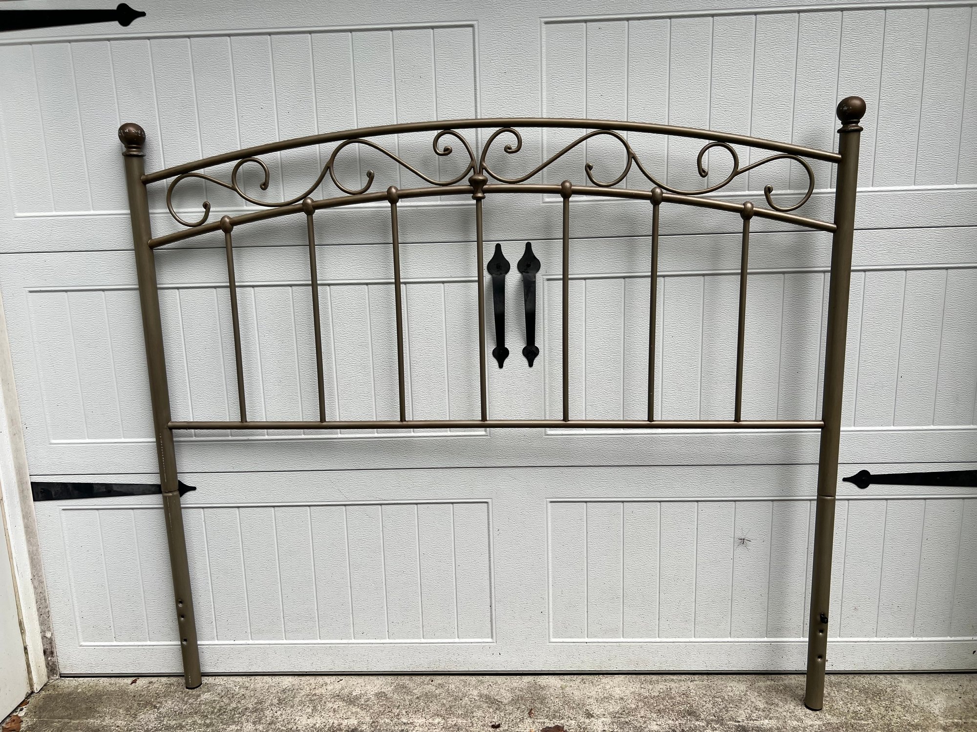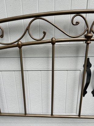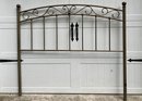 Full-size metal headboard measuring approx. 53 1/2" high × 60" wide. Sturdy construction with visible scratches. Ideal for use as-is or for refinishing.