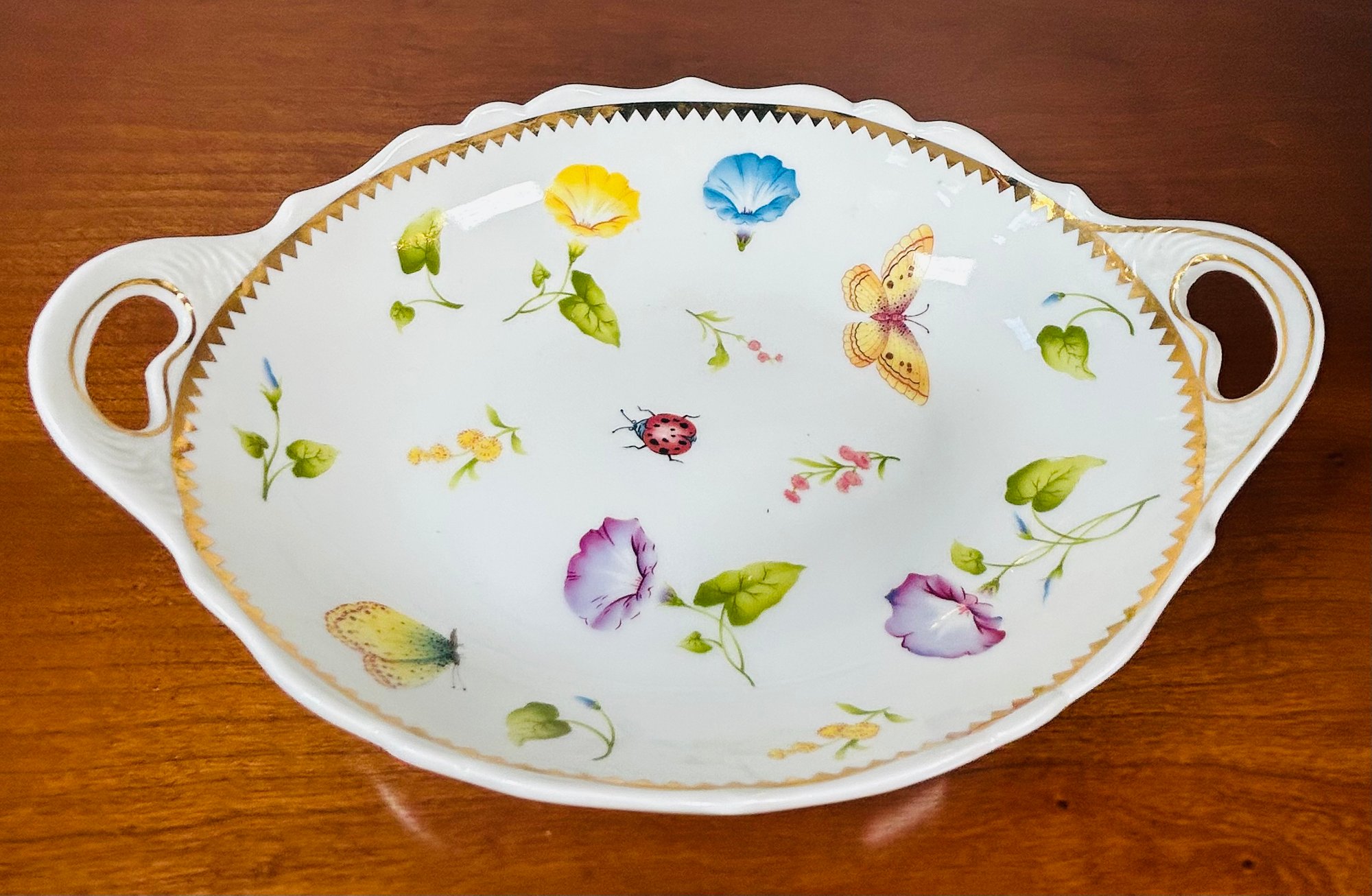 I. Godinger & Co. Bowl With Handles, Floral And Butterflies