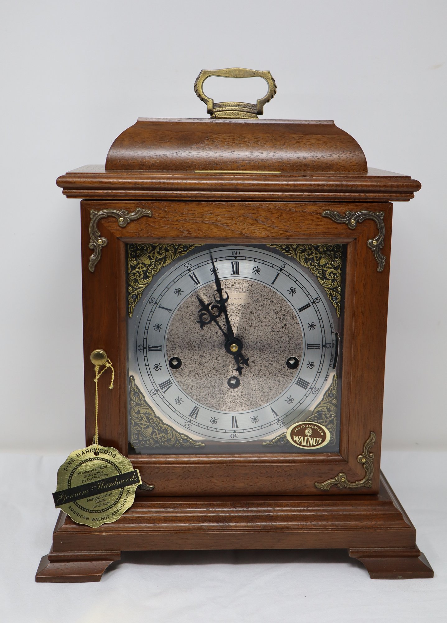 Solid American walnut Hamilton clock in the tradition of Lancaster County