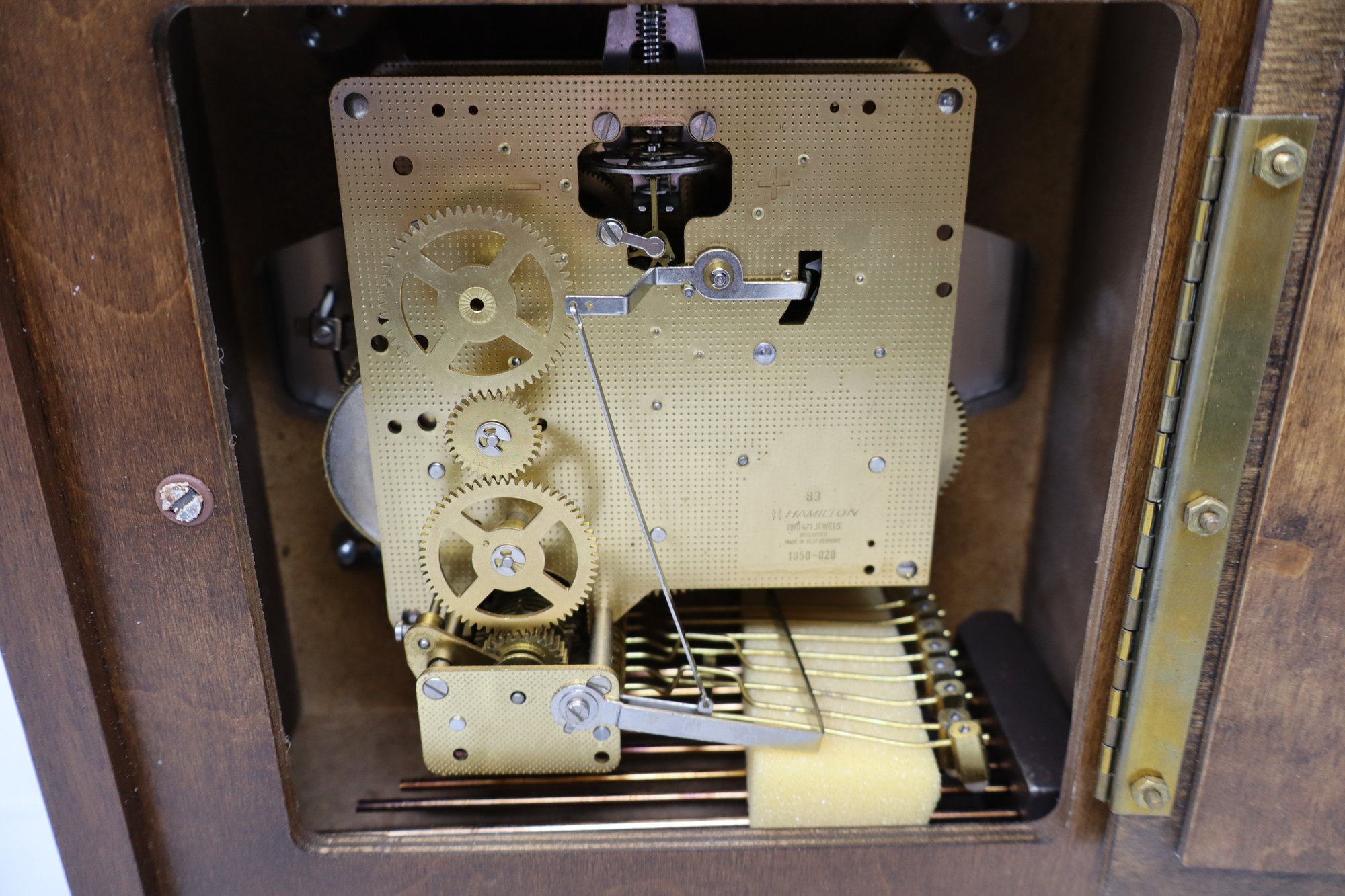 Quality features: 8-day keywind, quarter hour chime, hour strike, floating balance wheel, position chime capability