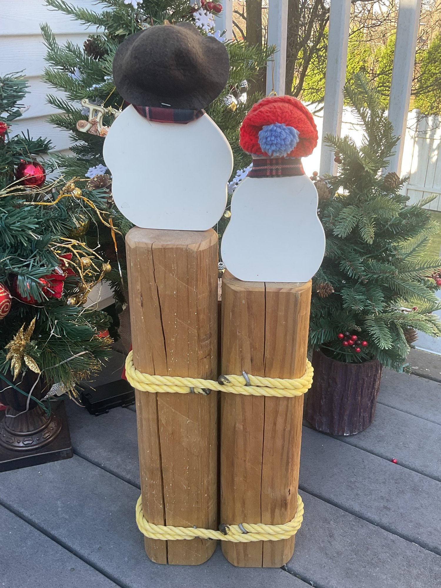 Snowman Nautical Piling "Welcome" Display
