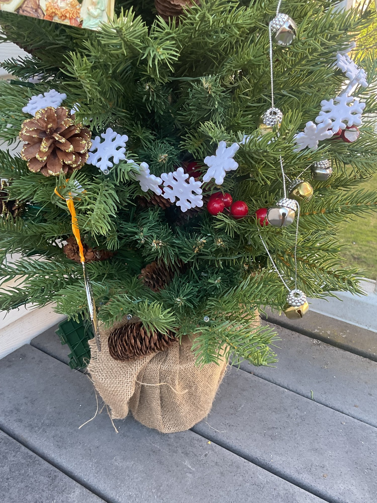 (2) Artificial Tabletop Christmas Trees with Ornaments