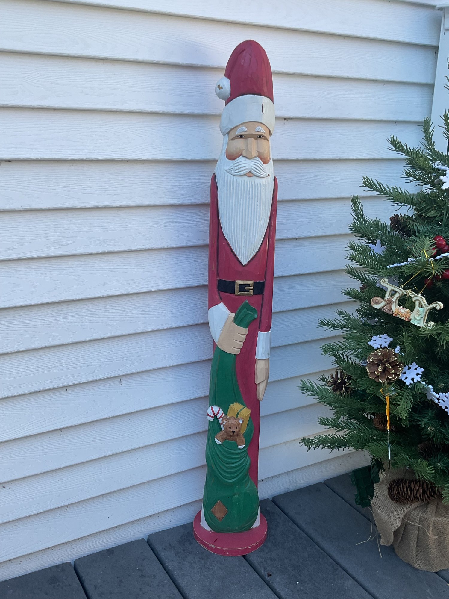 Hand-Carved Wooden Santa Figure (approx. 3-4 feet tall)