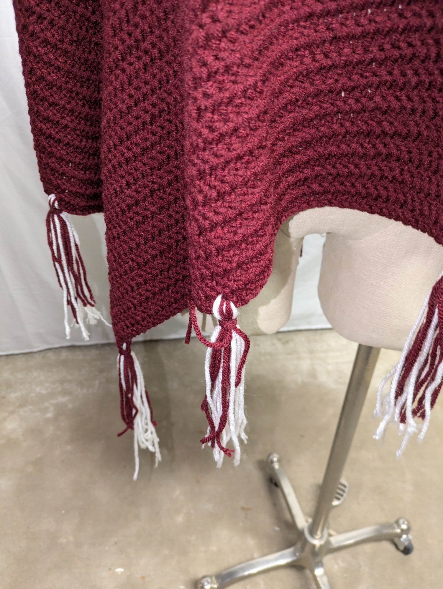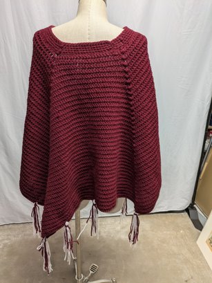 Beautiful hand Crocheted Poncho with Tassel Corner Edges. Excellent Condition. Please see all photos as part of the description and condition. One size, 35" Shoulder to the bottom of the tassel.