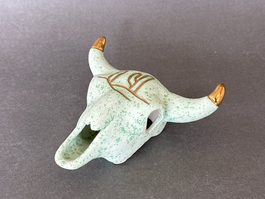 Hand Painted Pottery Skull With Gold Toned Detail