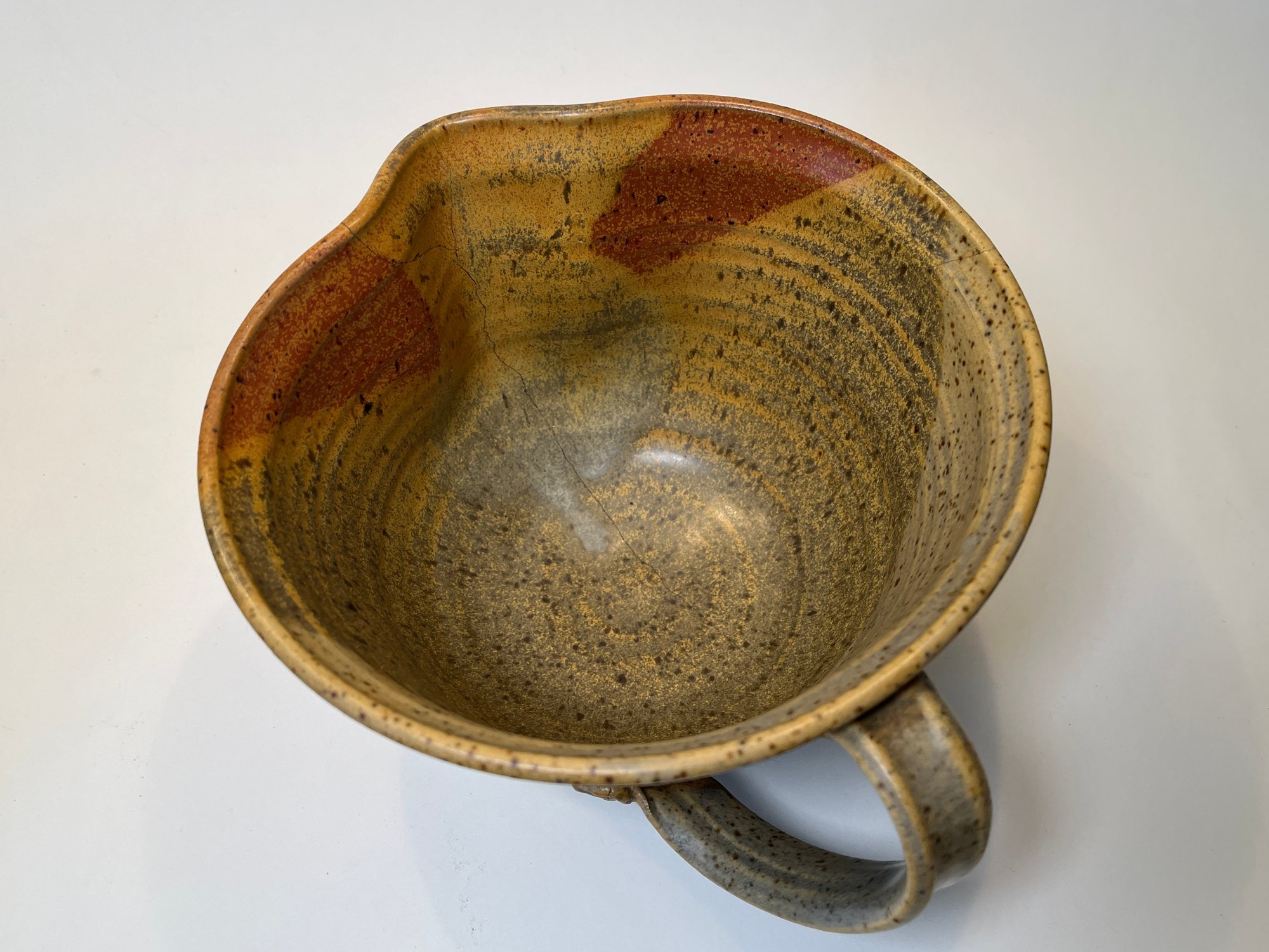 Batter bowl has a non leaking crack. The batter bowl's crack holds batter with out leaking.