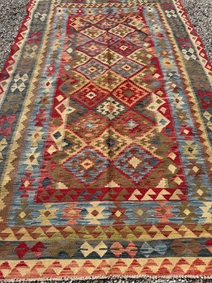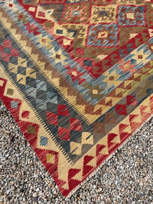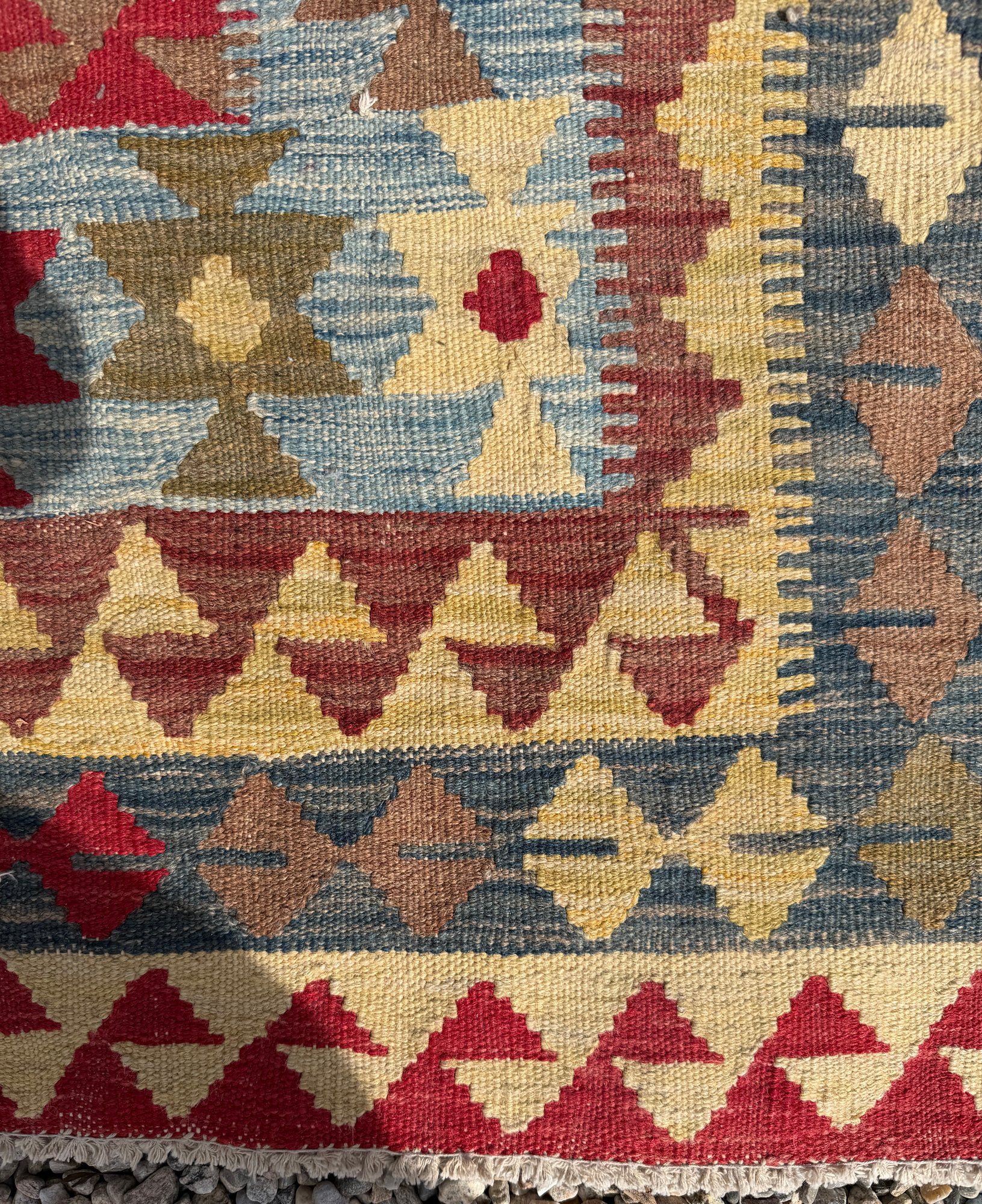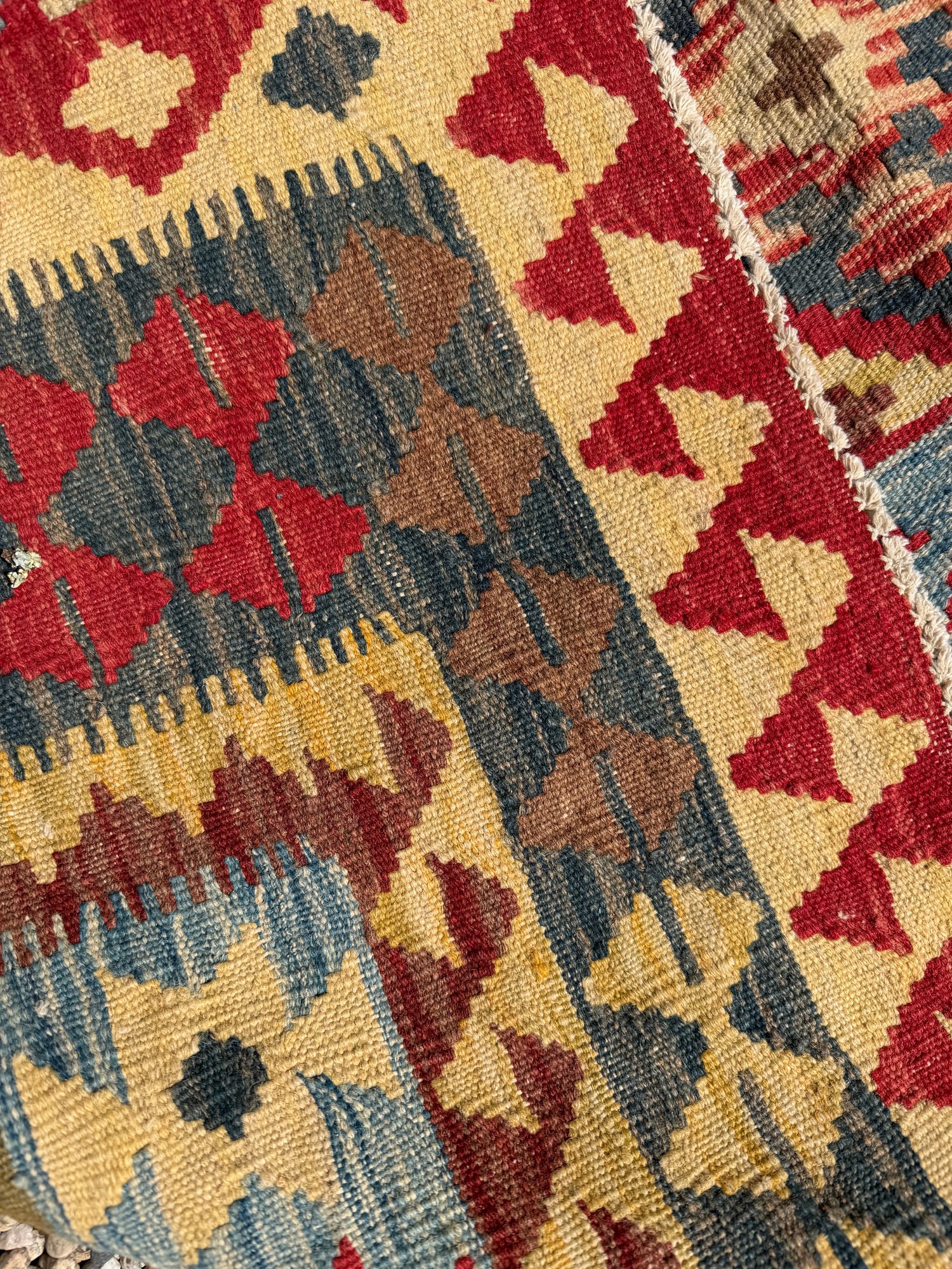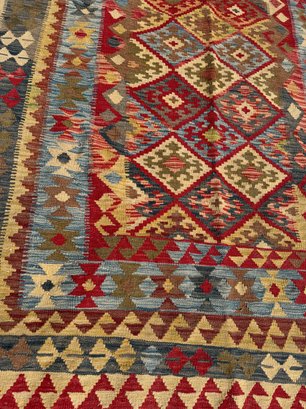 Hand Woven Kilim Maymana Wool Rug in gorgeous vibrant colors