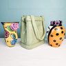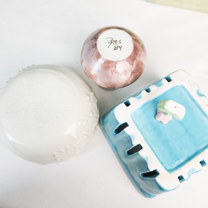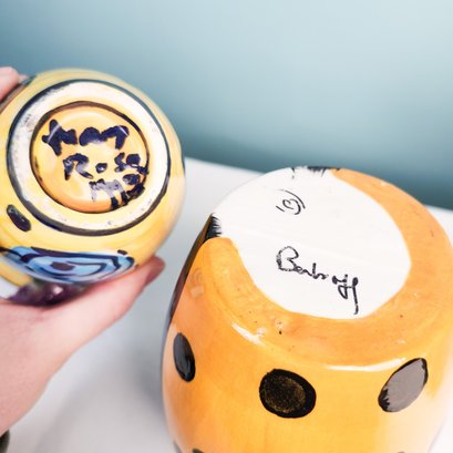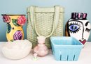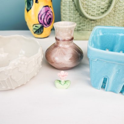 Fun lot of handmade signed pottery including one that looks like a purse and one that looks like a berry basket.
