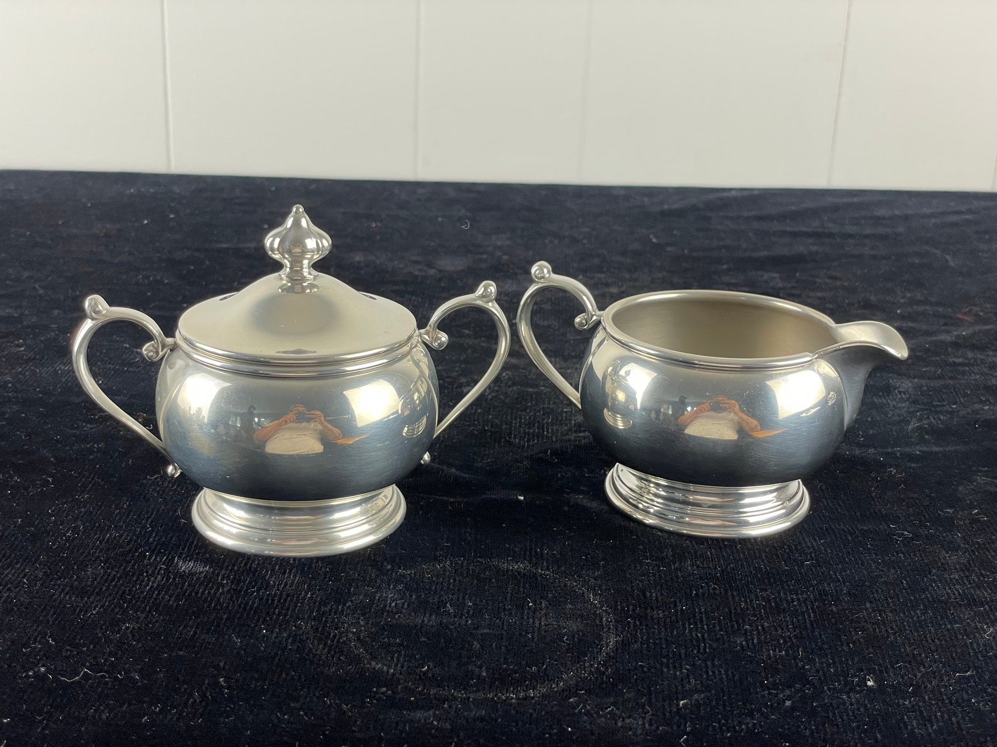 Hanle Distinctive American Pewter Creamer & Covered Sugar Set