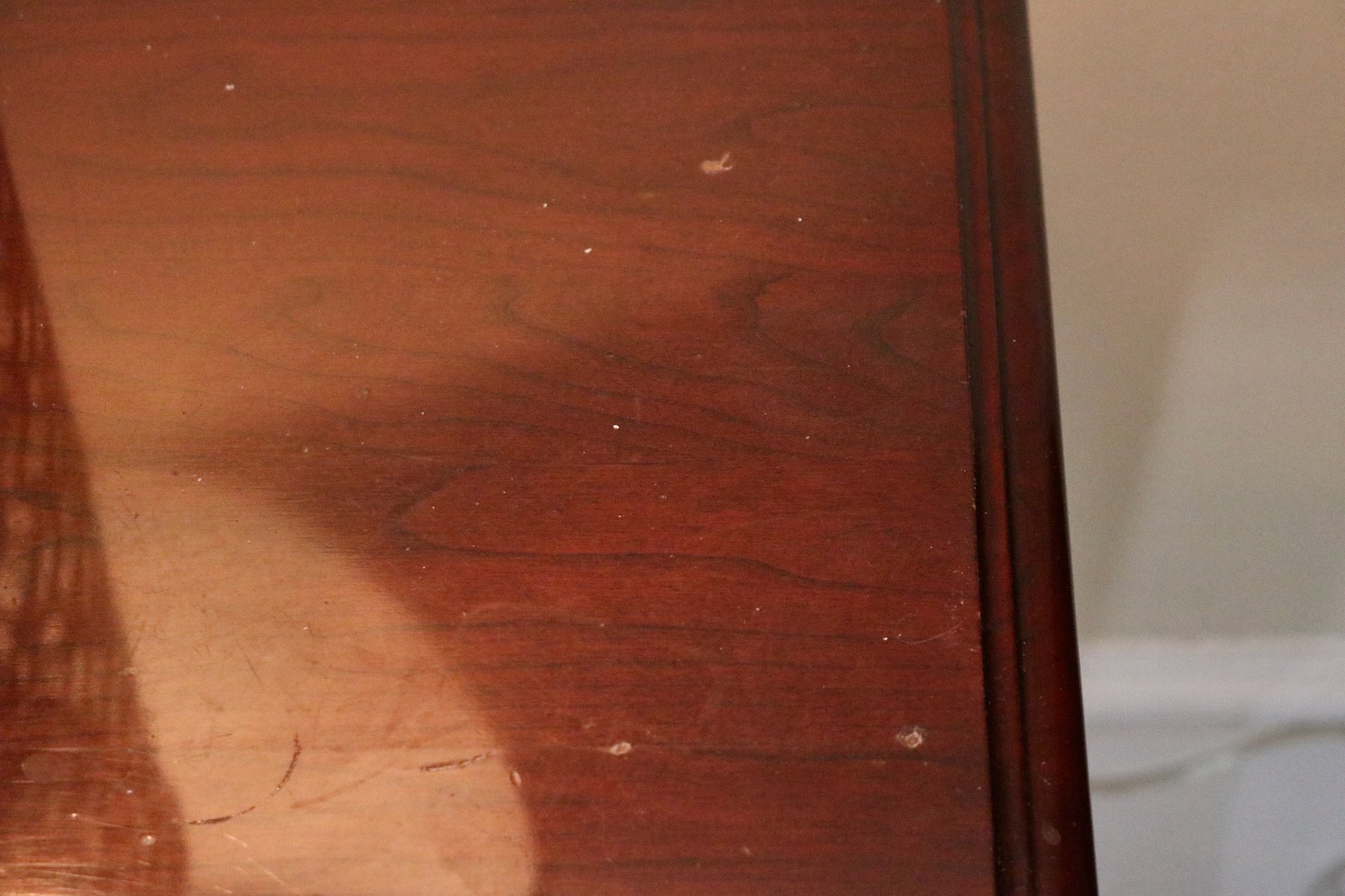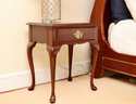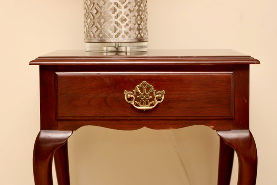 Warm reddish-brown mahogany finish with subtle grain variation. Compact proportions make it ideal as a nightstand, lamp table, or occasional side table.