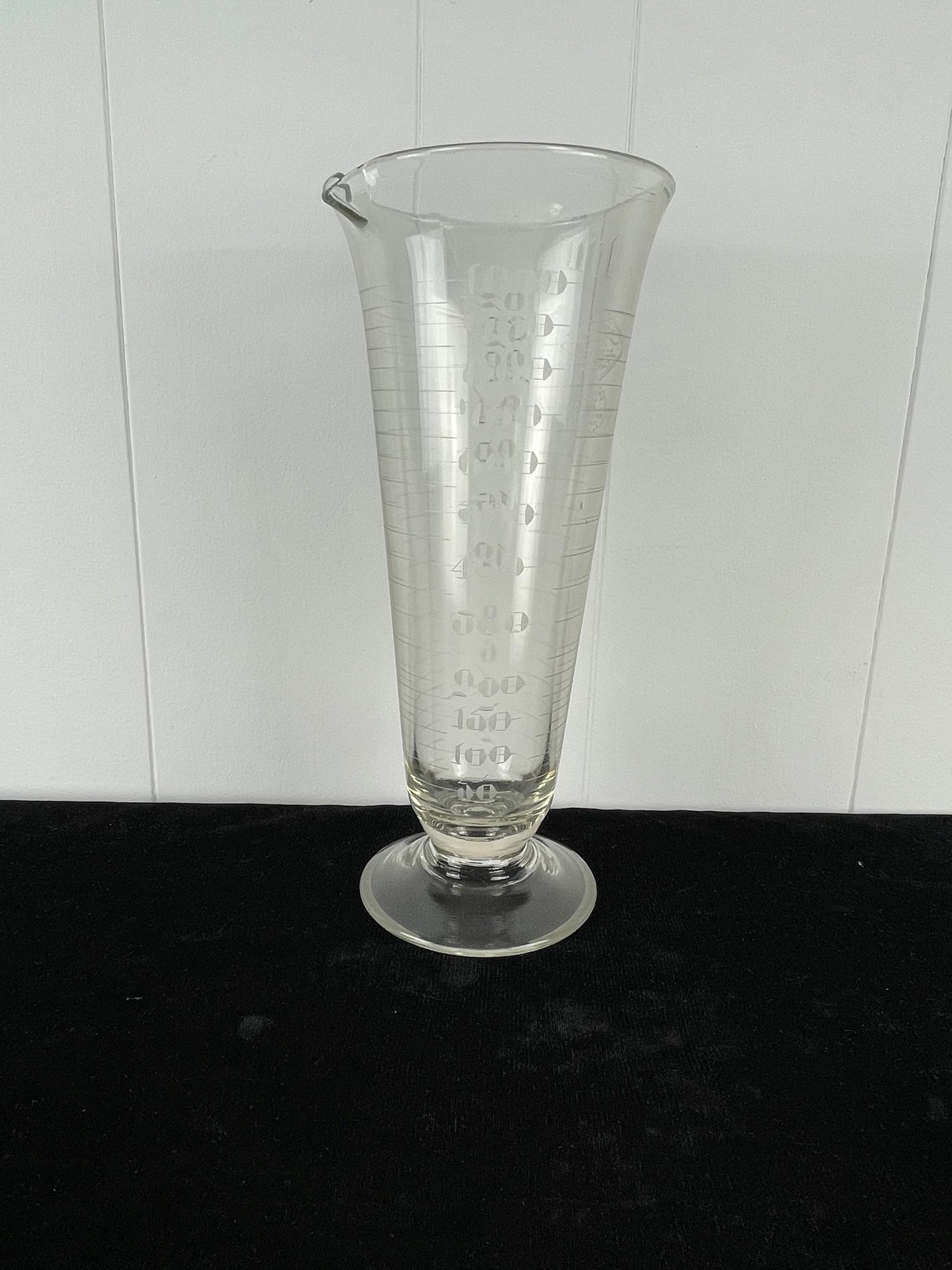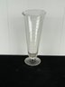 Etched numbers along side. Brand imprinted on side as well. Round pedestal base. Clear glass. Very few scratches seen in images. See photos for more conditions and sizing.