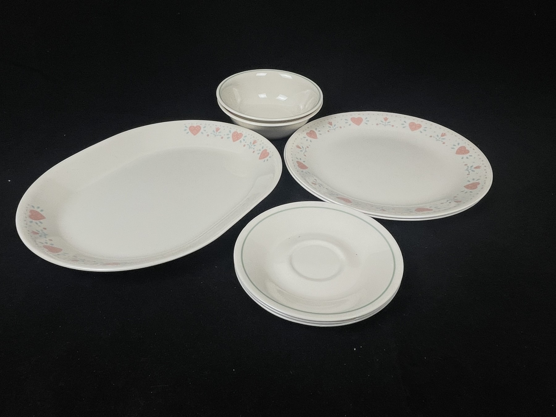 Heart And Green Lined Dish Lot