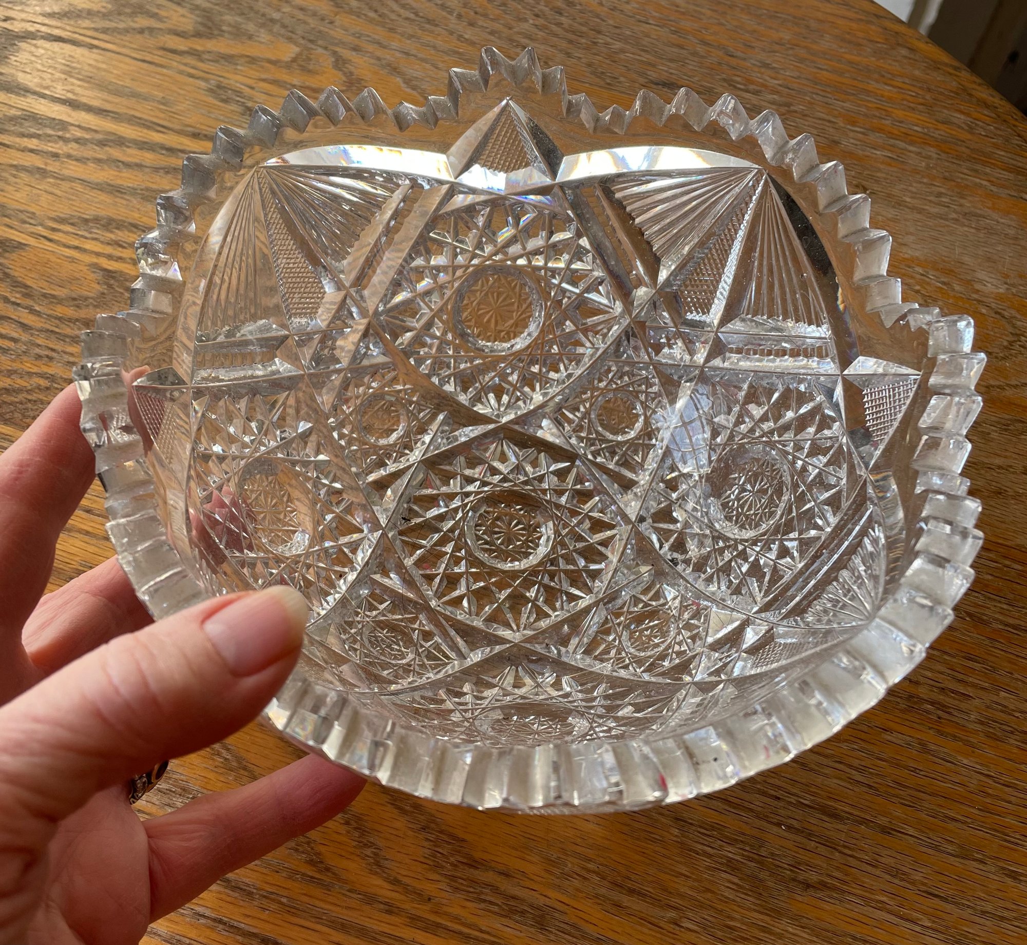 A great looking early cut glass bowl with a wonderful jagged edge. It weighs approximately