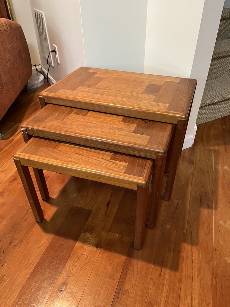 Tables measure 18.5x15.25x14" - 24.5x15.75x17.5. One has what looks like paint one side, otherwise in very good condition.