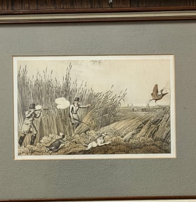 English artist Henry Thomas Alken (1785–1851). Depicts a 19th-century scene of gentry engaged in partridge hunting with gundogs.