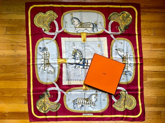Hermes Grand Apparat 35" silk scarf.